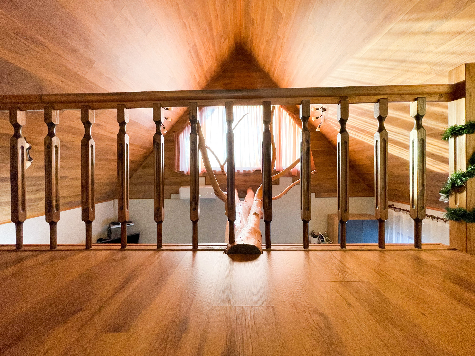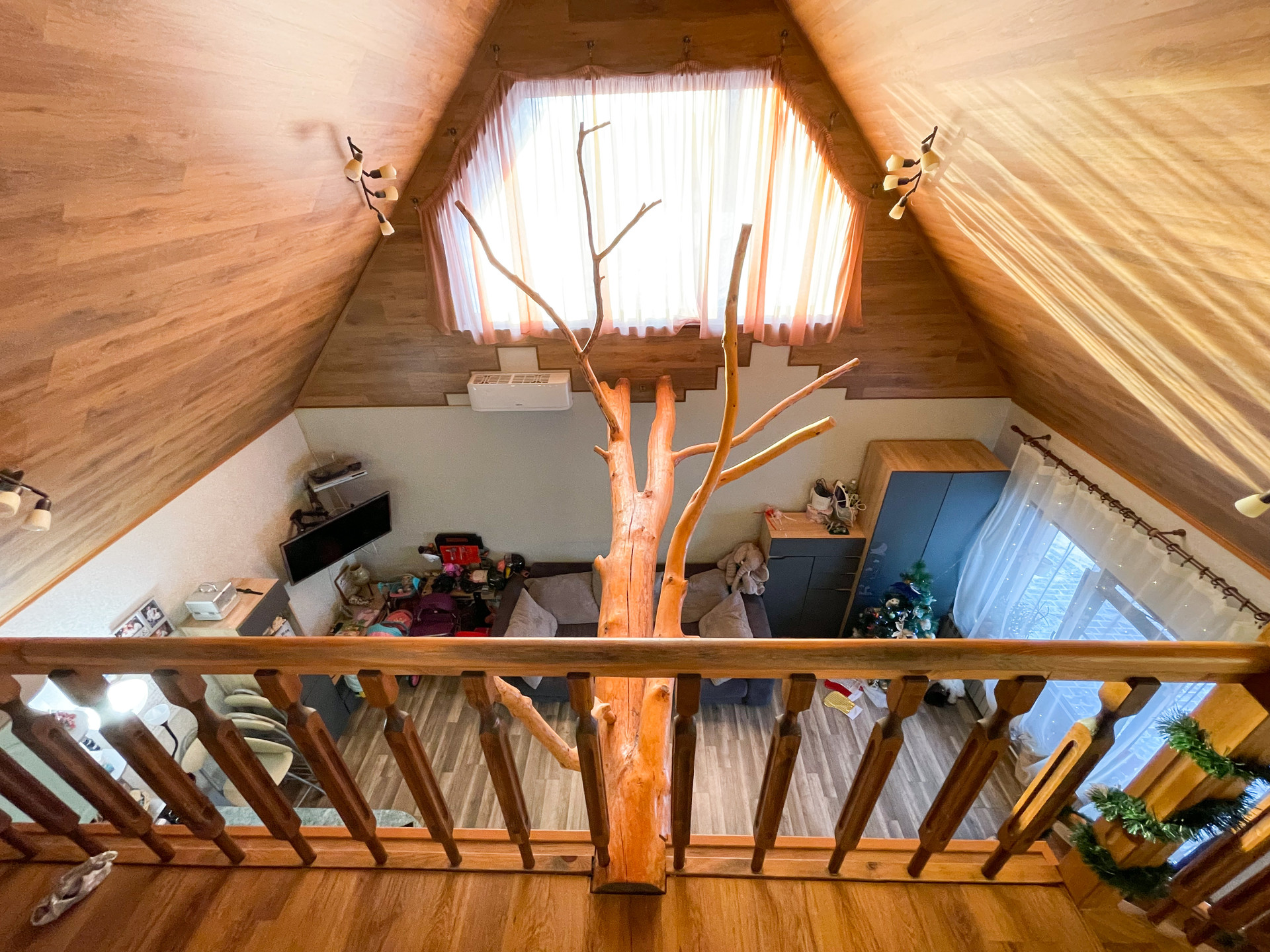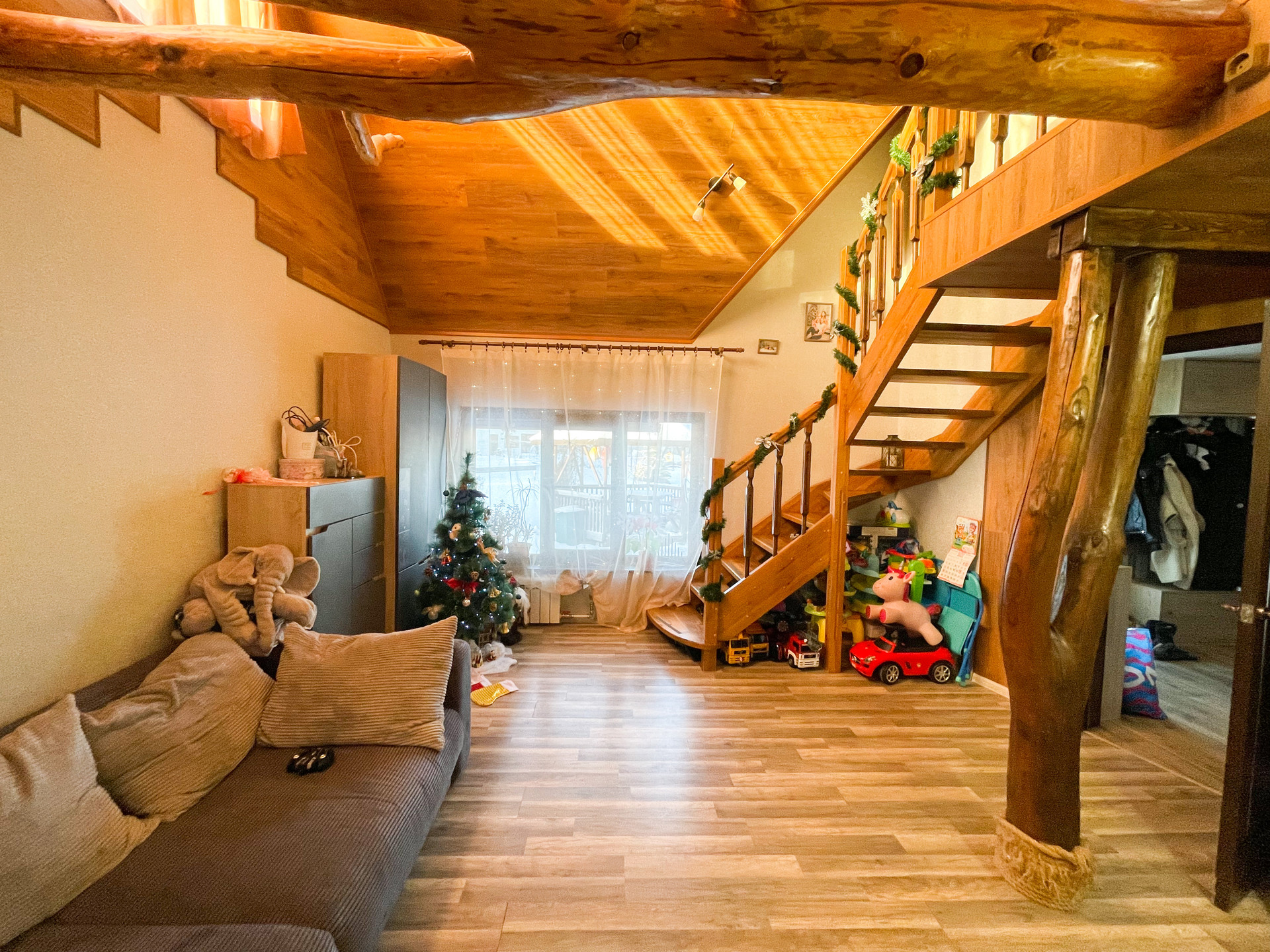 Прочная и уверенная лестница ведет на второй этаж.