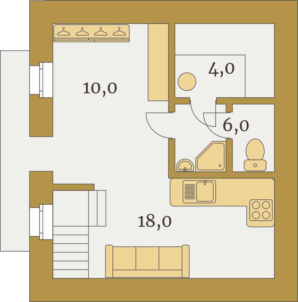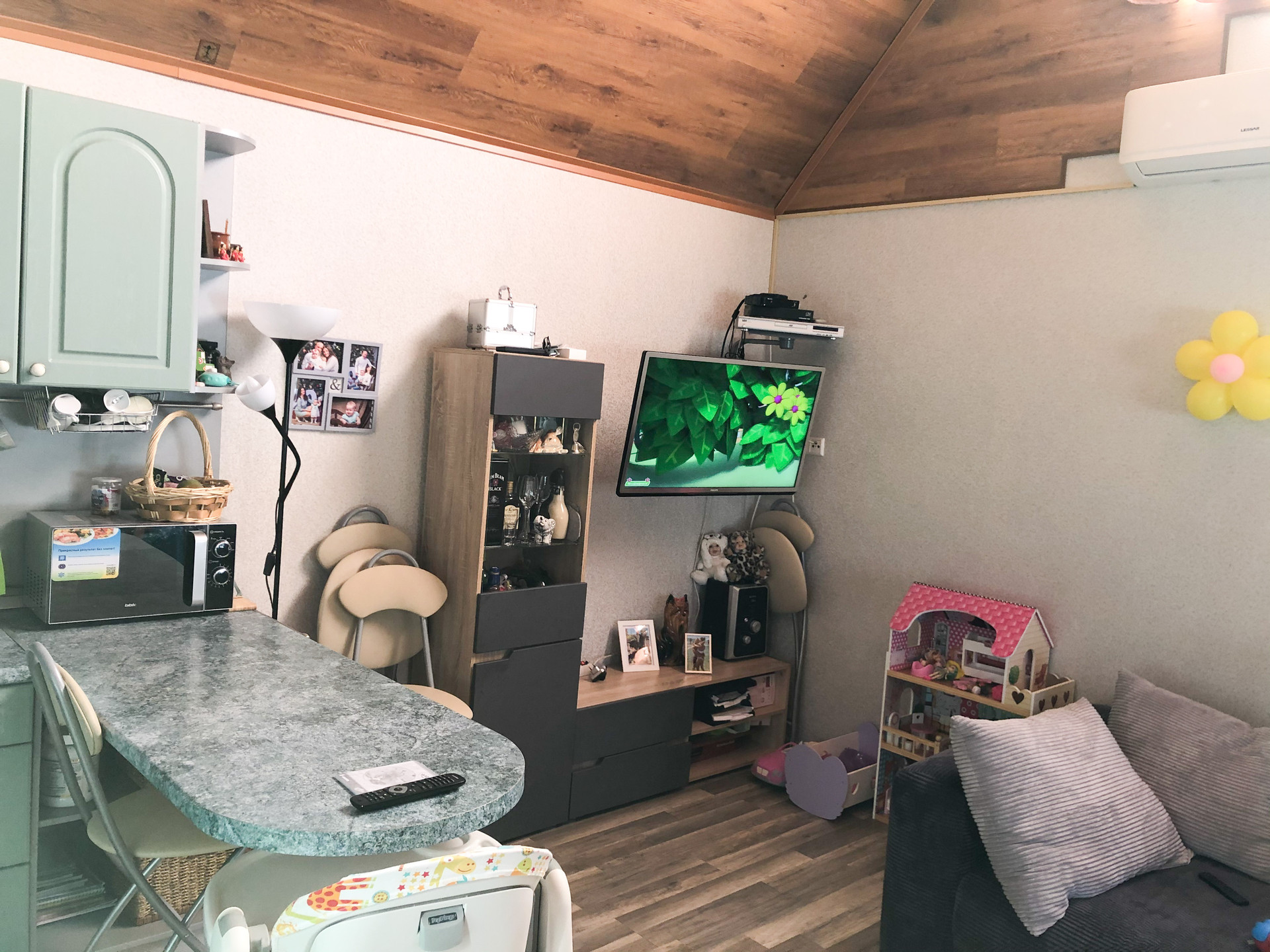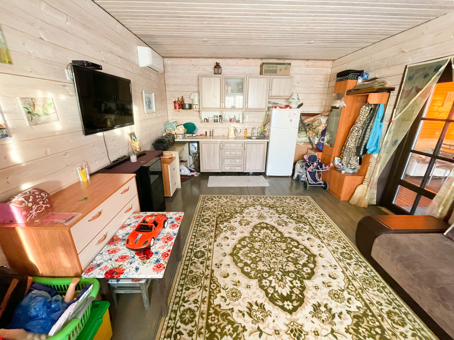 Теплая каркасная зона 24м2 с утеплением 150 делает этот дом полноценным и позволит комфортно пребывать тут и зимой, оборудован небольшой кухней.