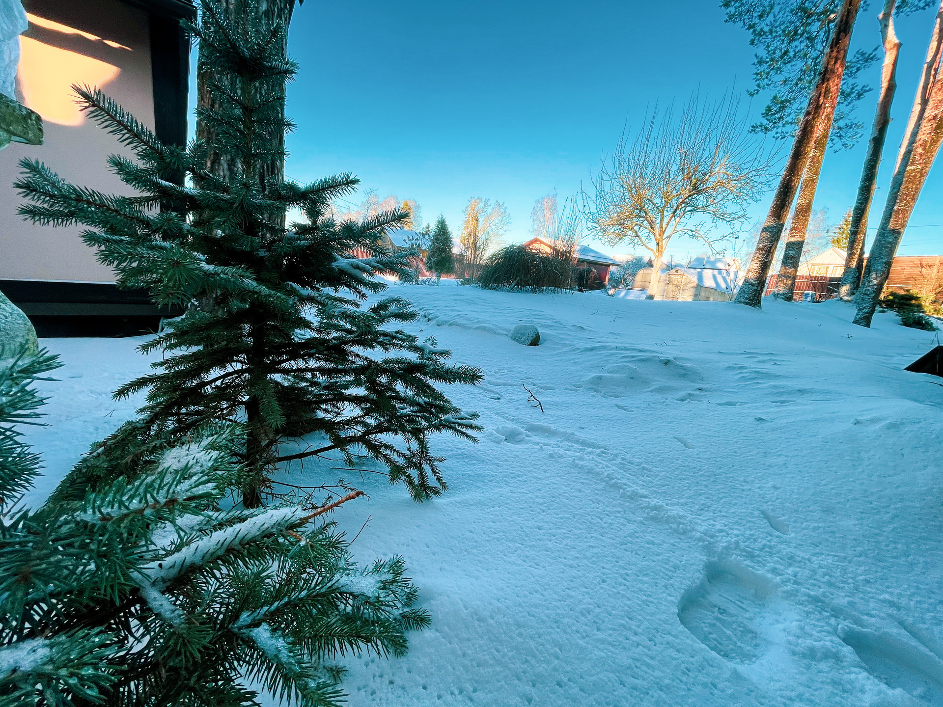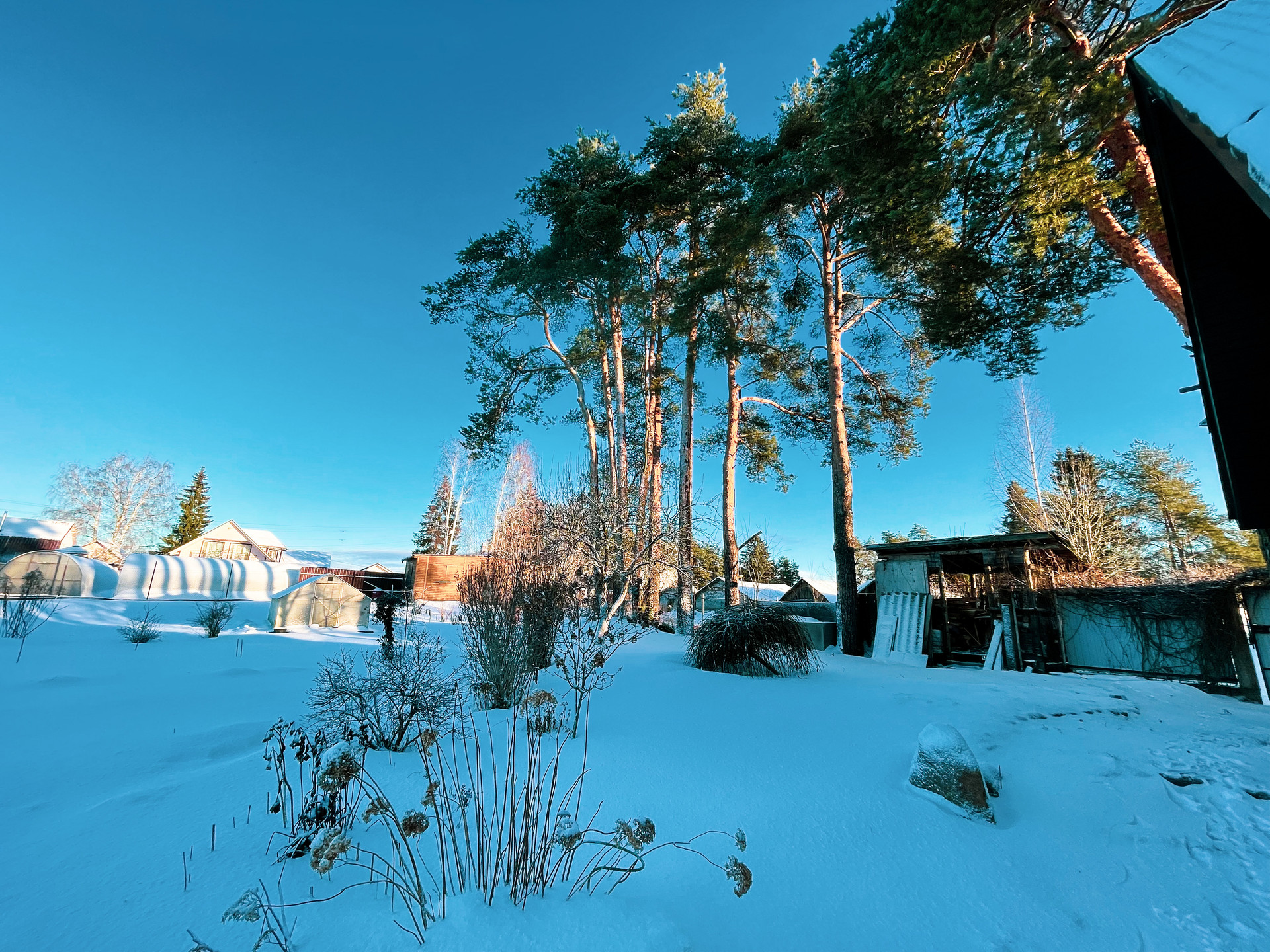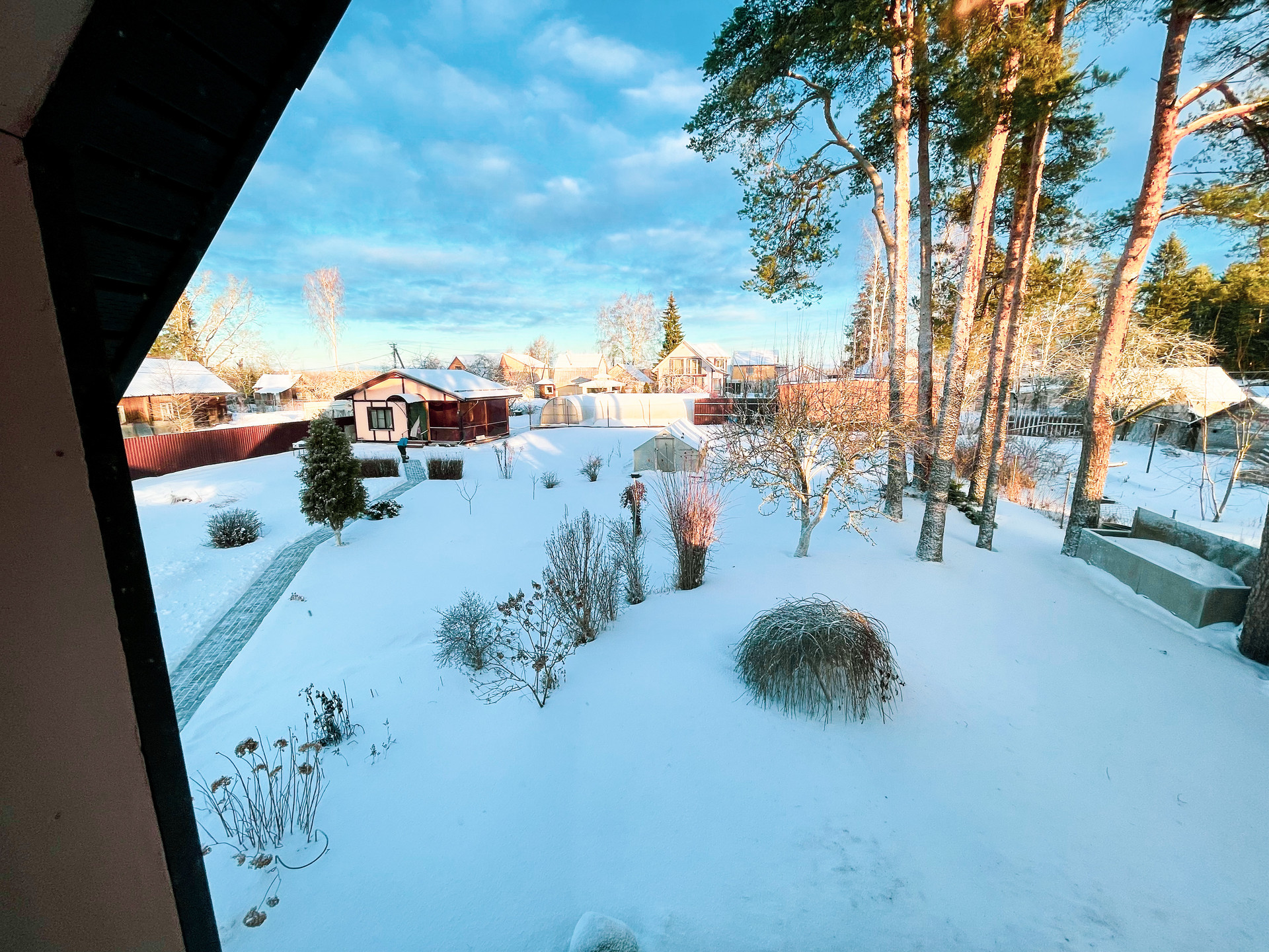 на территории находятся 16 прекрасных сосен и есть еще много разных не менее интересных растений - газон по периметру участка.