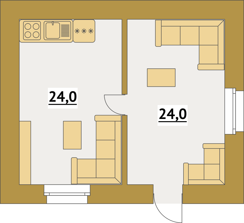 Дом зонирован на две части - теплую и летнюю каждая по 24м2