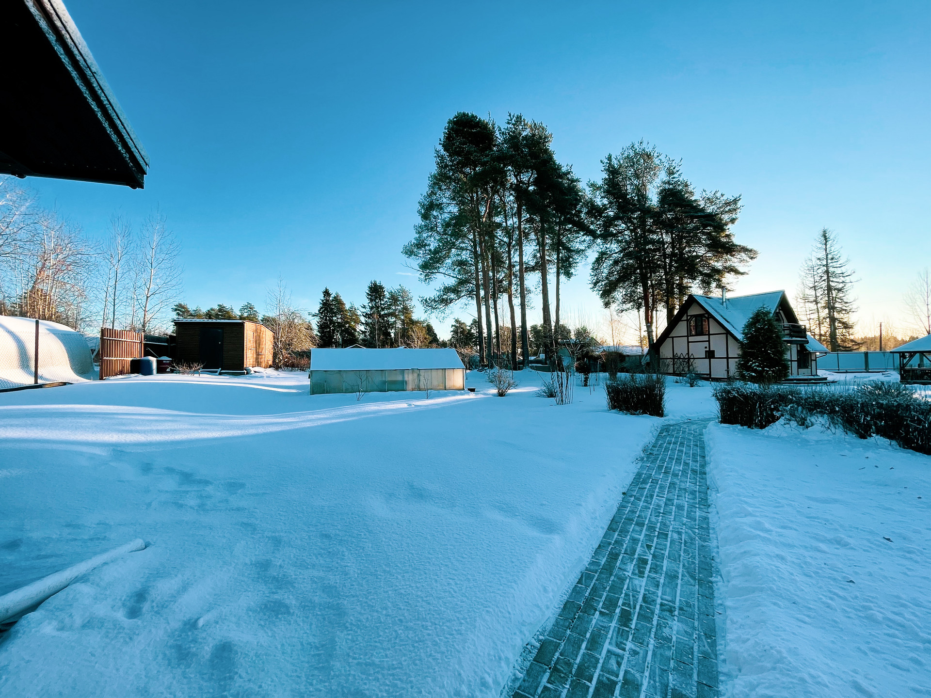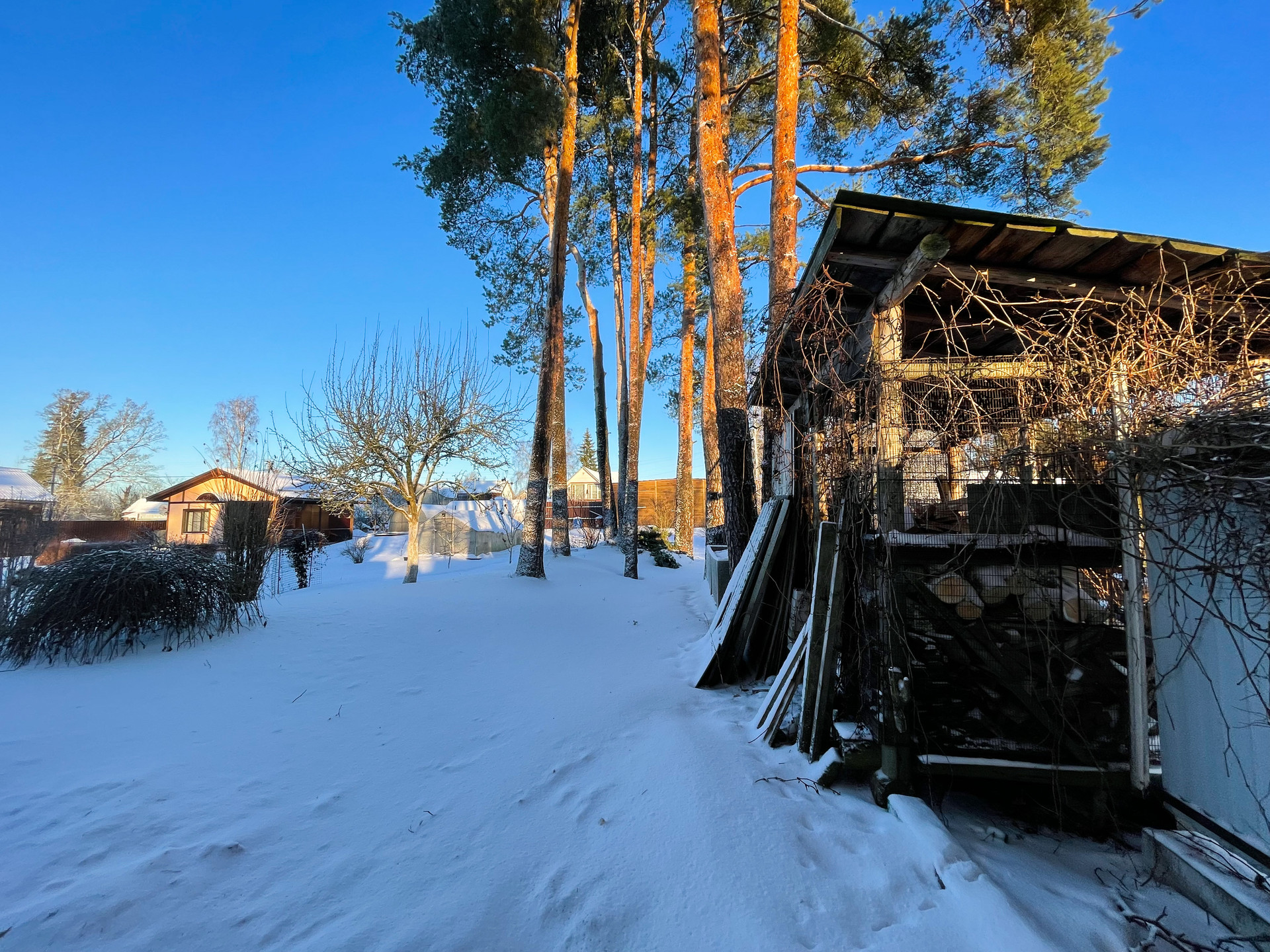 Так же есть теплица и дровяник.