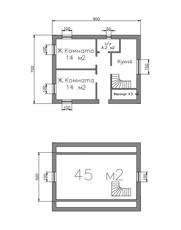 Общая площадь 90 м2