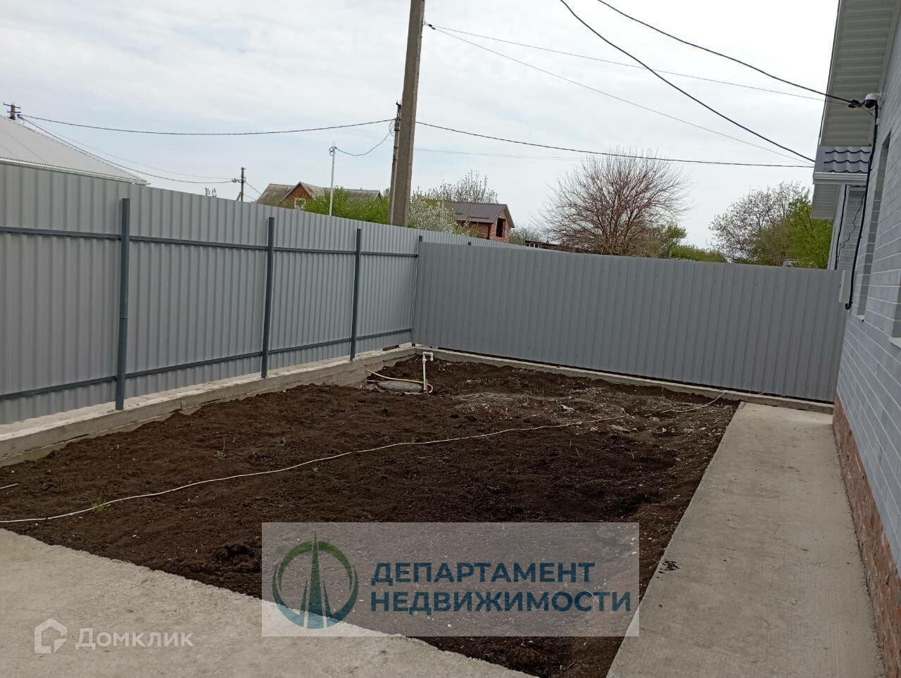 Въезд на 2 машины, откатные ворота. Участок огорожен забором.