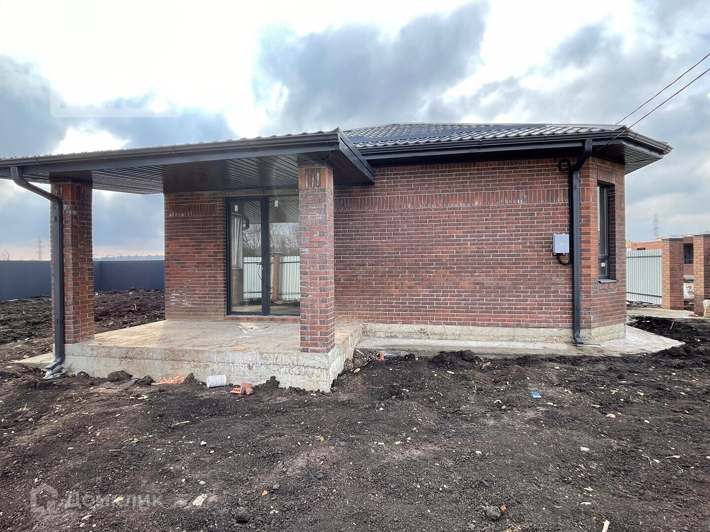 Электрические роллетные ворота на пульте, бетонированное место для машины + дорожка до калитки + отмостка вокруг дома;