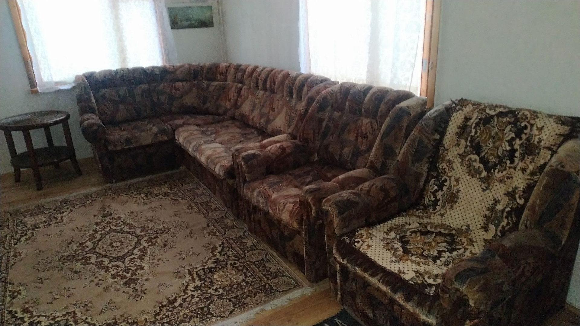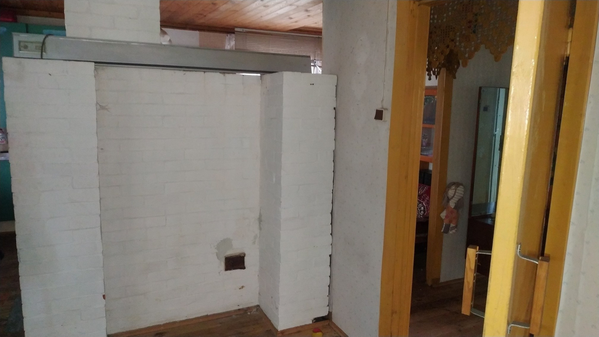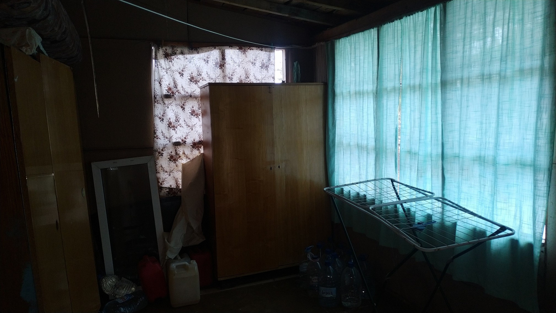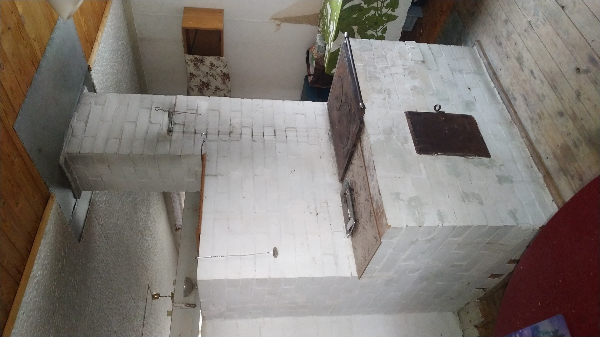 Дом одноэтажный, каркарный, обшит вагонкой, с двумя комнатами, большая русская дровяная печь отапливает дом. Застеклённая веранда, кладовка, кухня.