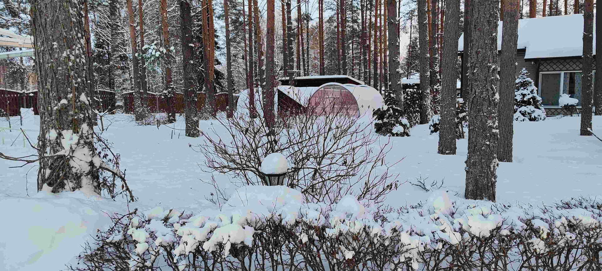 Великолепный ландшафтный дизайн участка поражает своей красотой, неприхотливые хосты, баданы, многолетняя герань, бегония, клематисы, лилии, цветущие кустарники. На лесной части участка растут черника и лесная земляника. Яблони, сортовая малина и смородина.