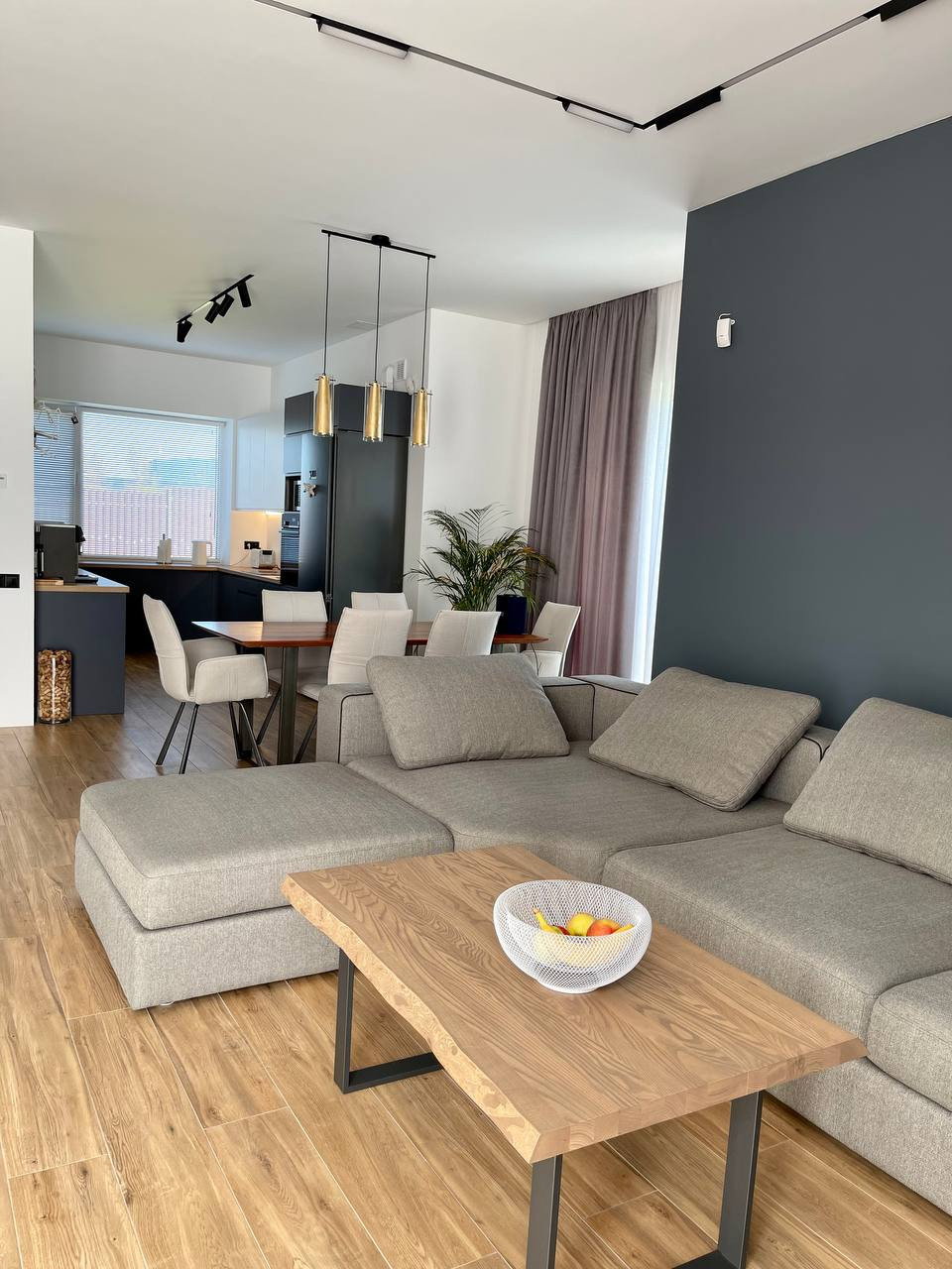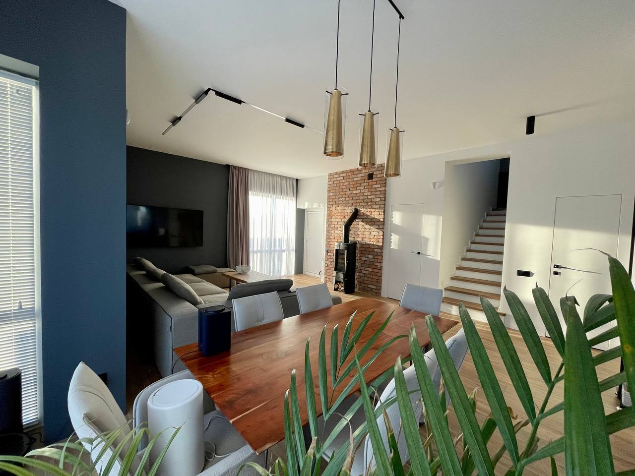 Первый этаж дома: гостиная с большим и функциональным диваном O’PRIME , камин SUPRA ( Франция ), кабинет &спортзал, подсобное помещение, котельная, обеденная зона ( стол из натурального массива) , кухня сделана на заказ , вся техника фирмы BOSCH.