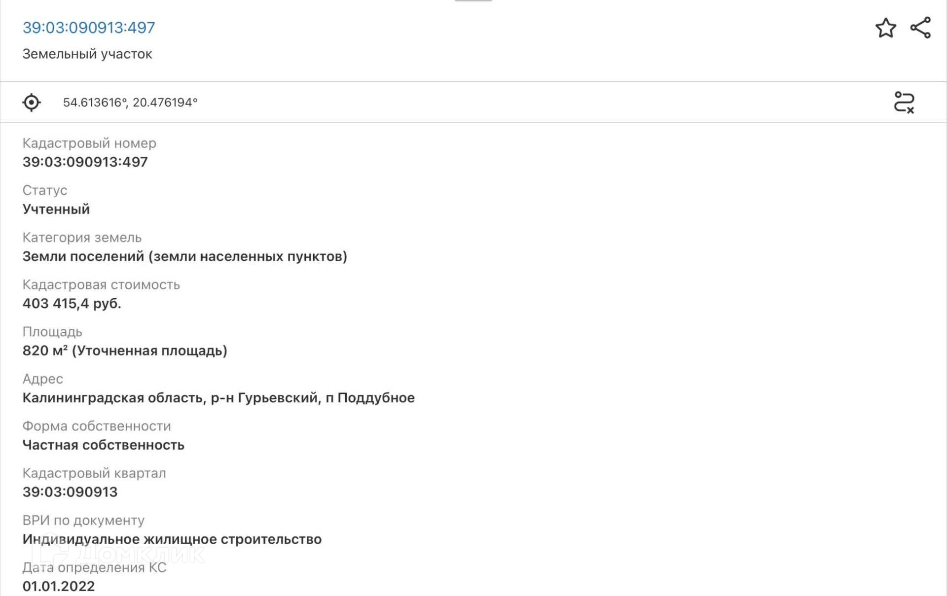 Номер в базе: 11190544. Район: Поддубное