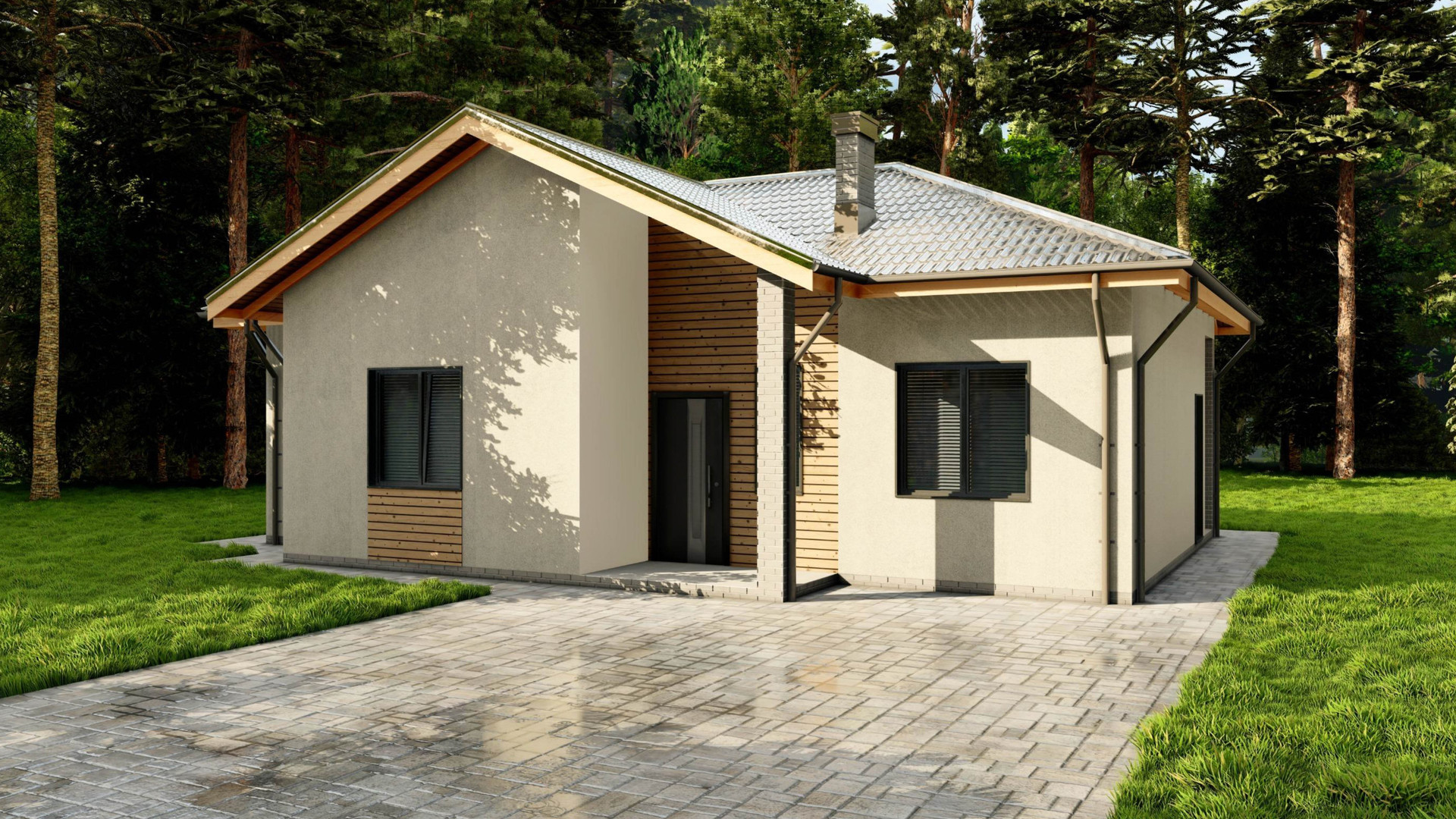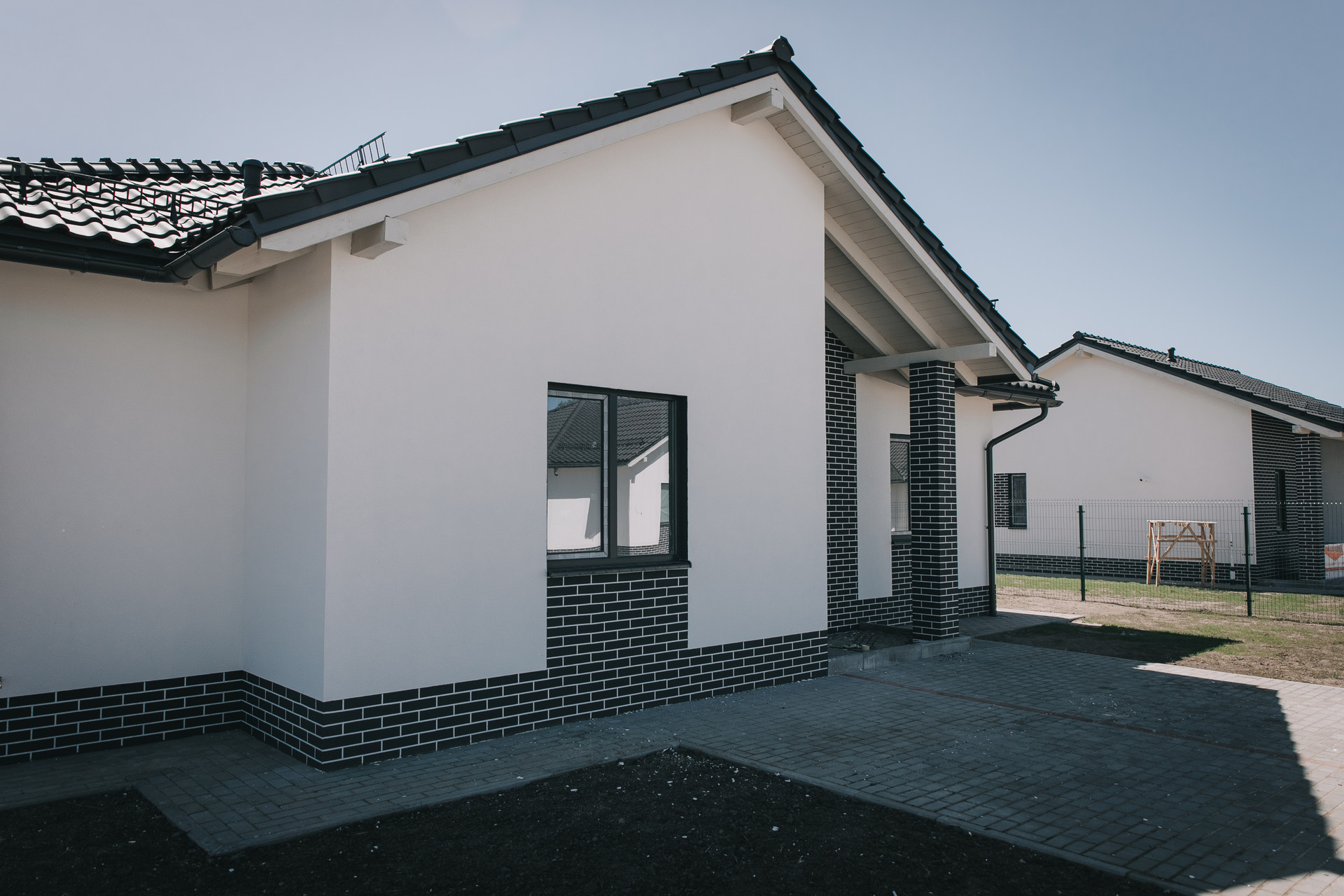 - парковка на две машины, выложенная тротуарной плиткой
