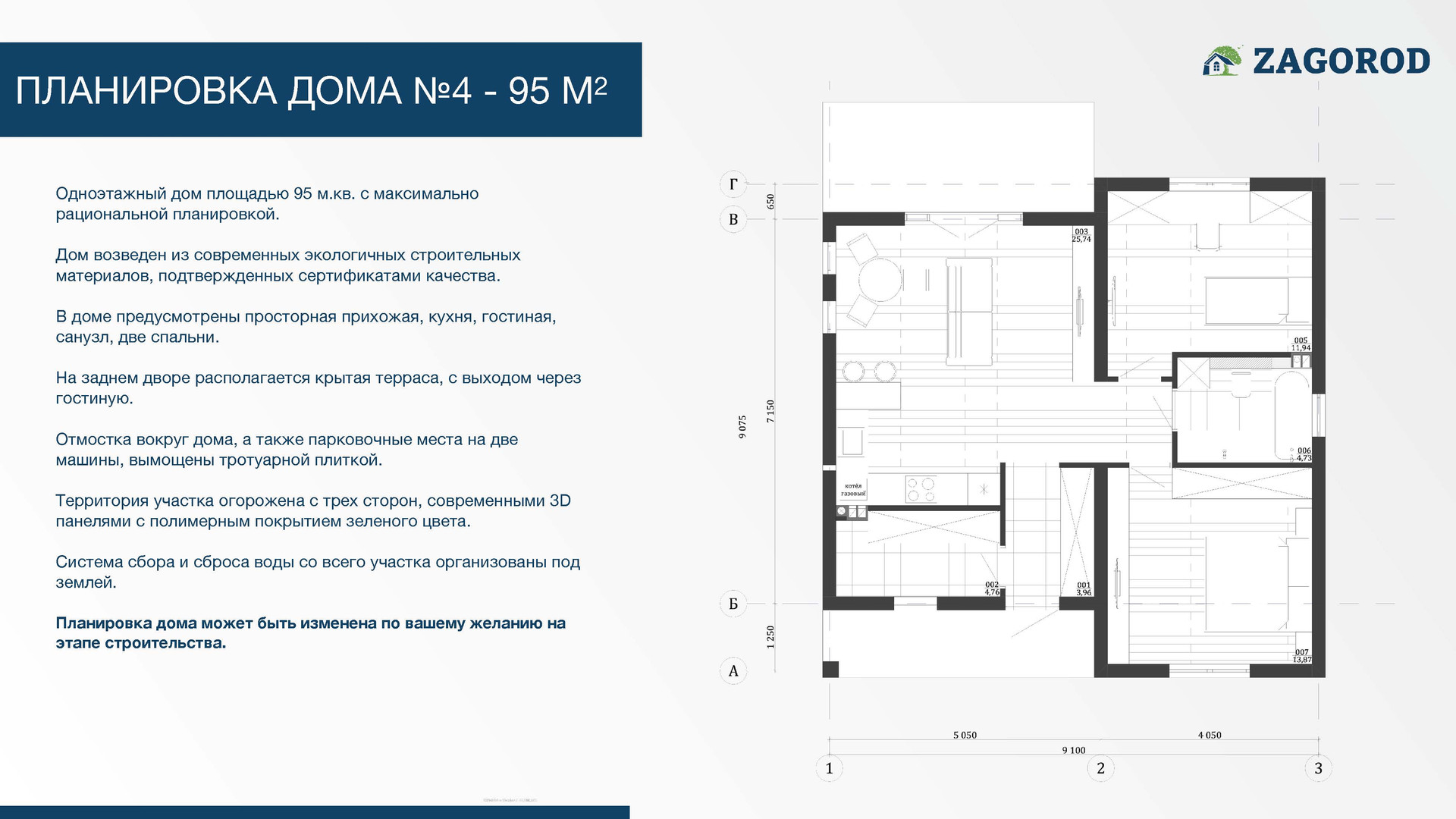 Современны коттеджный поселок «ZAGOROD» расположен в 6 км от г. Калининград (Гурьевский район, п. Заозерье). Категория земель – ИЖС. Подъездные дороги, шириной 6 метров, тротуарная плитка. Места общего пользования и дороги будут освещены.
