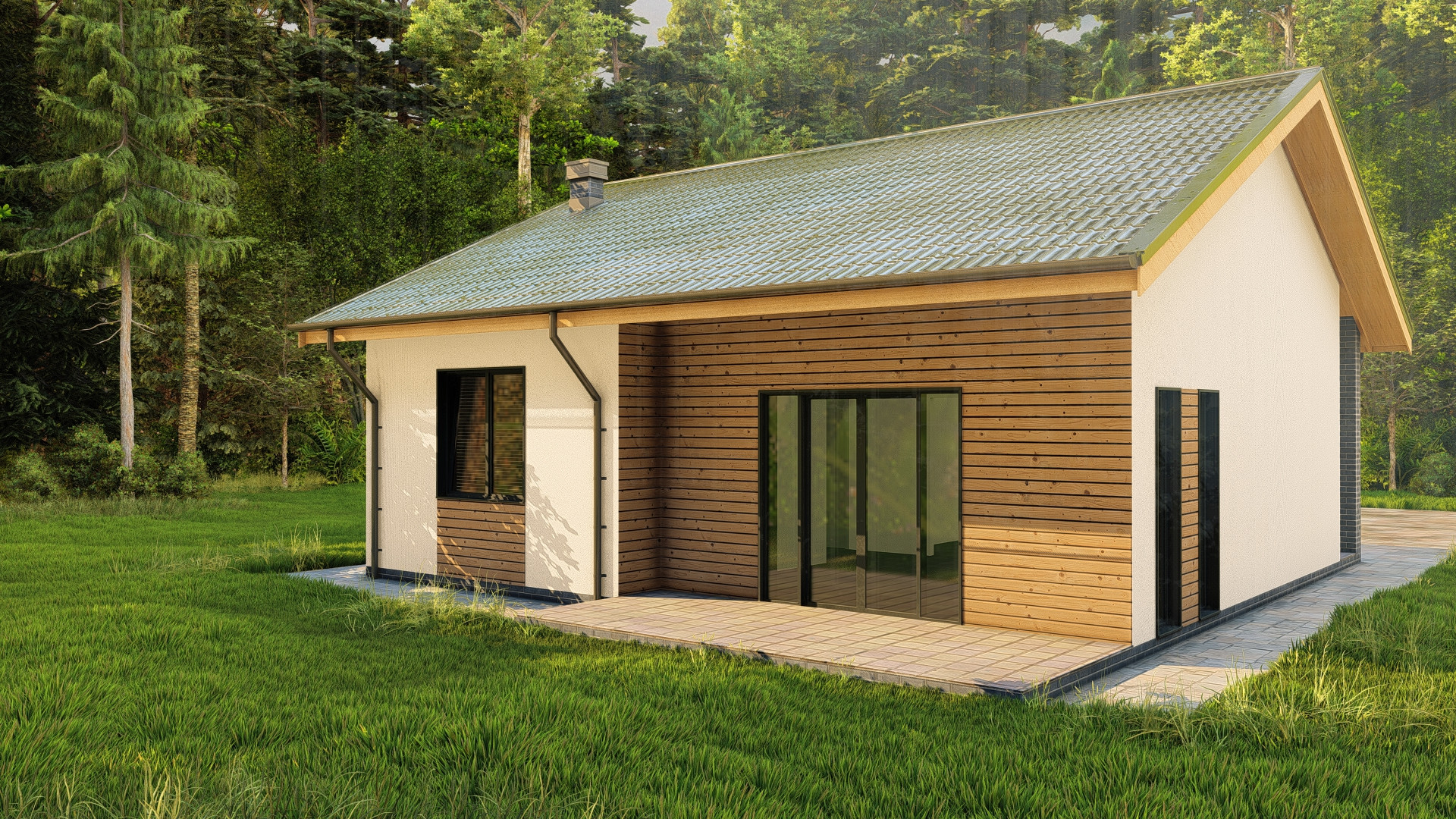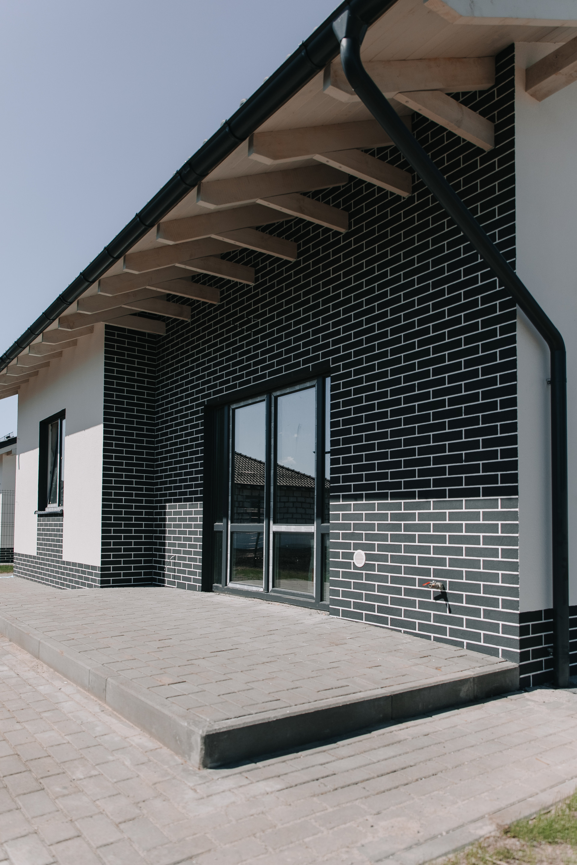 - терраса тротуарная плитка, с выходом из гостиной, на заднем дворе