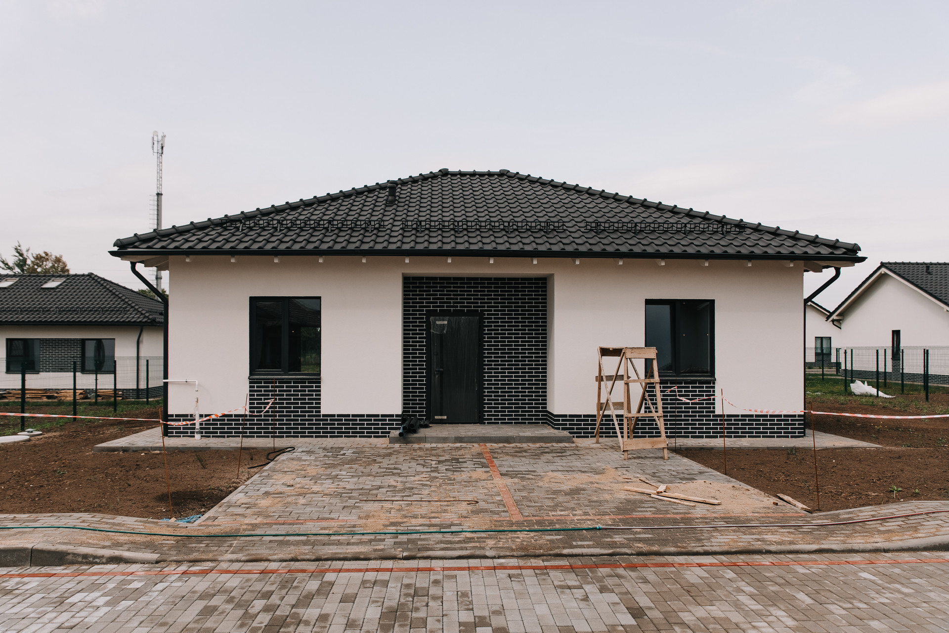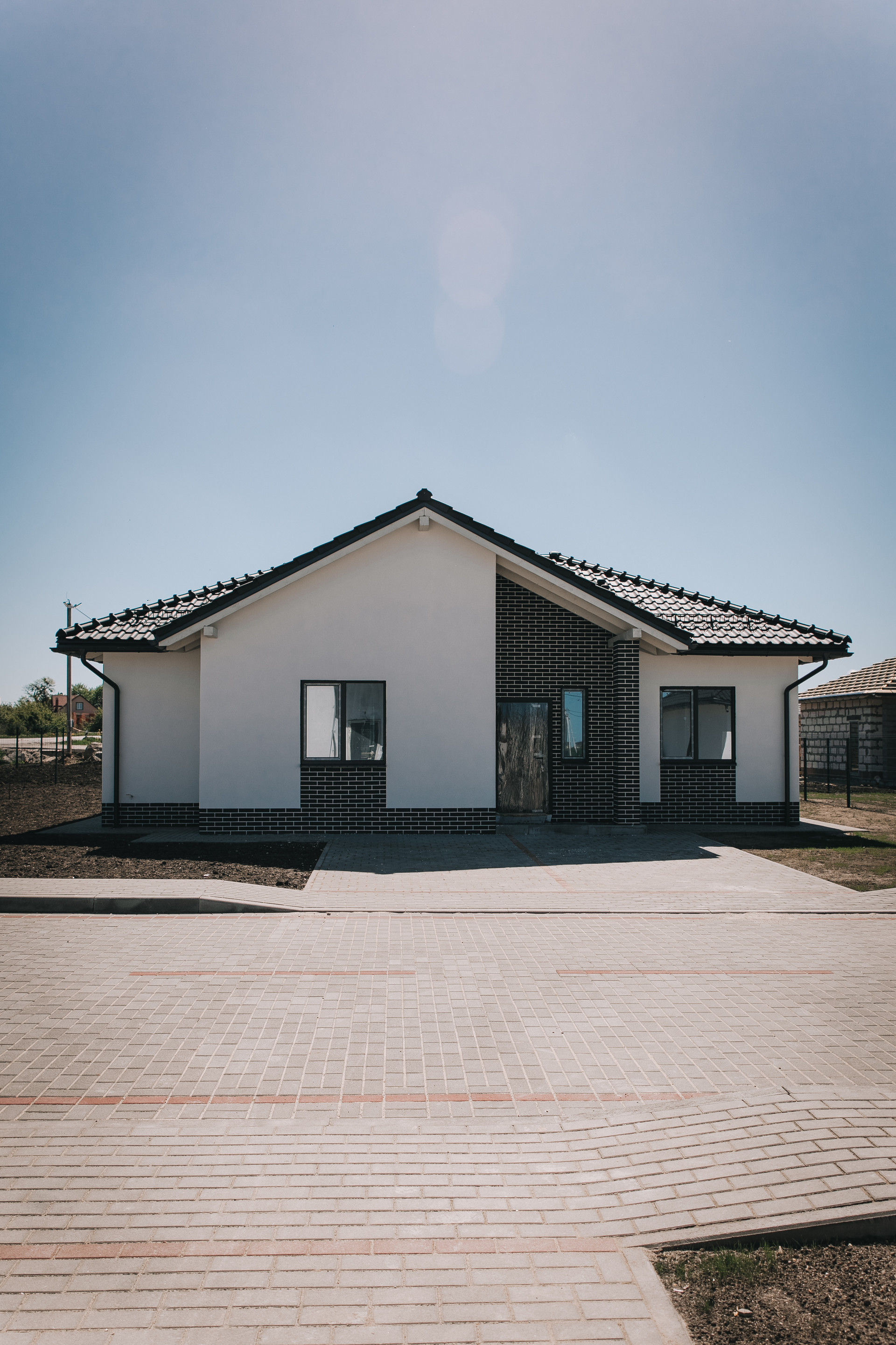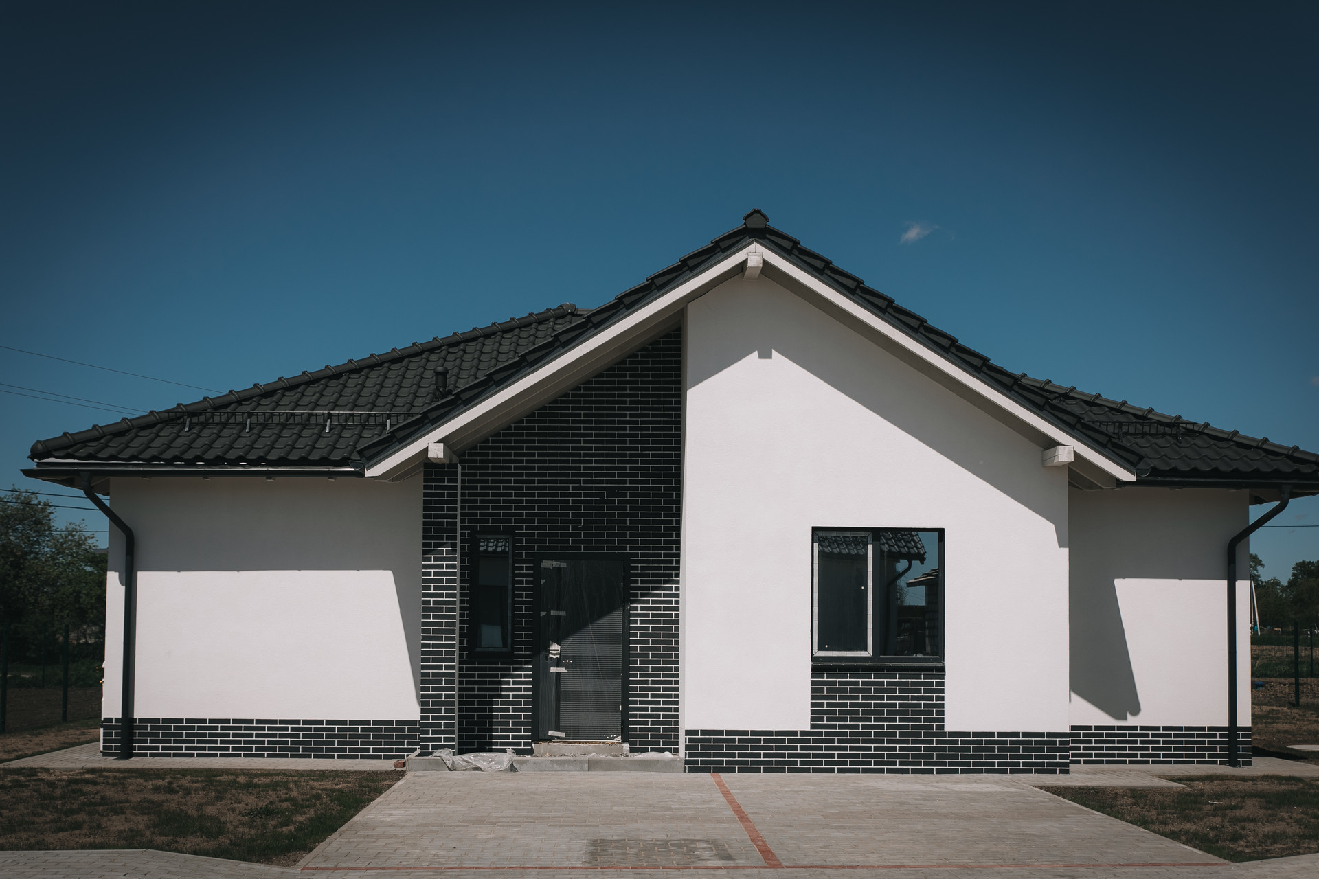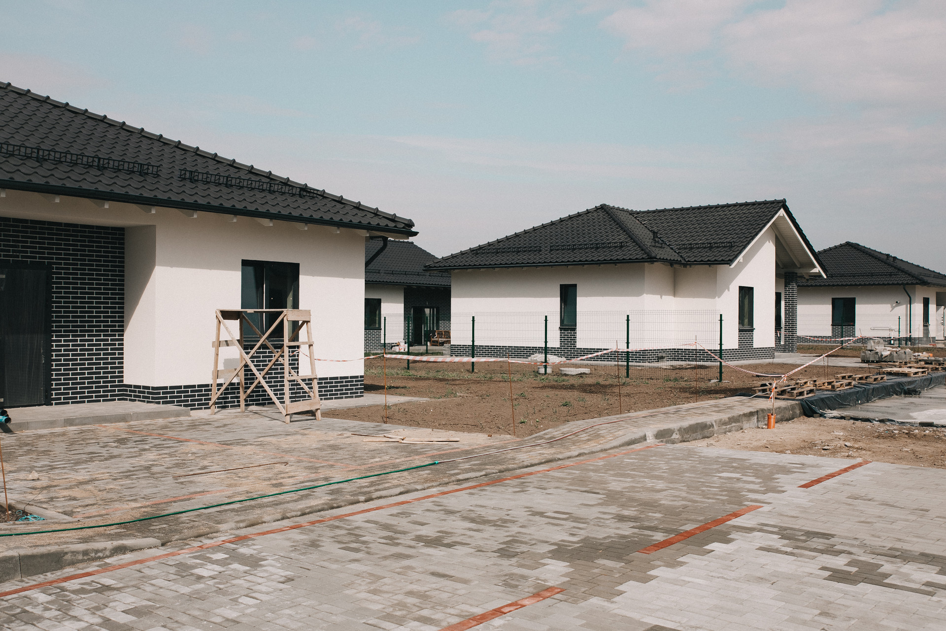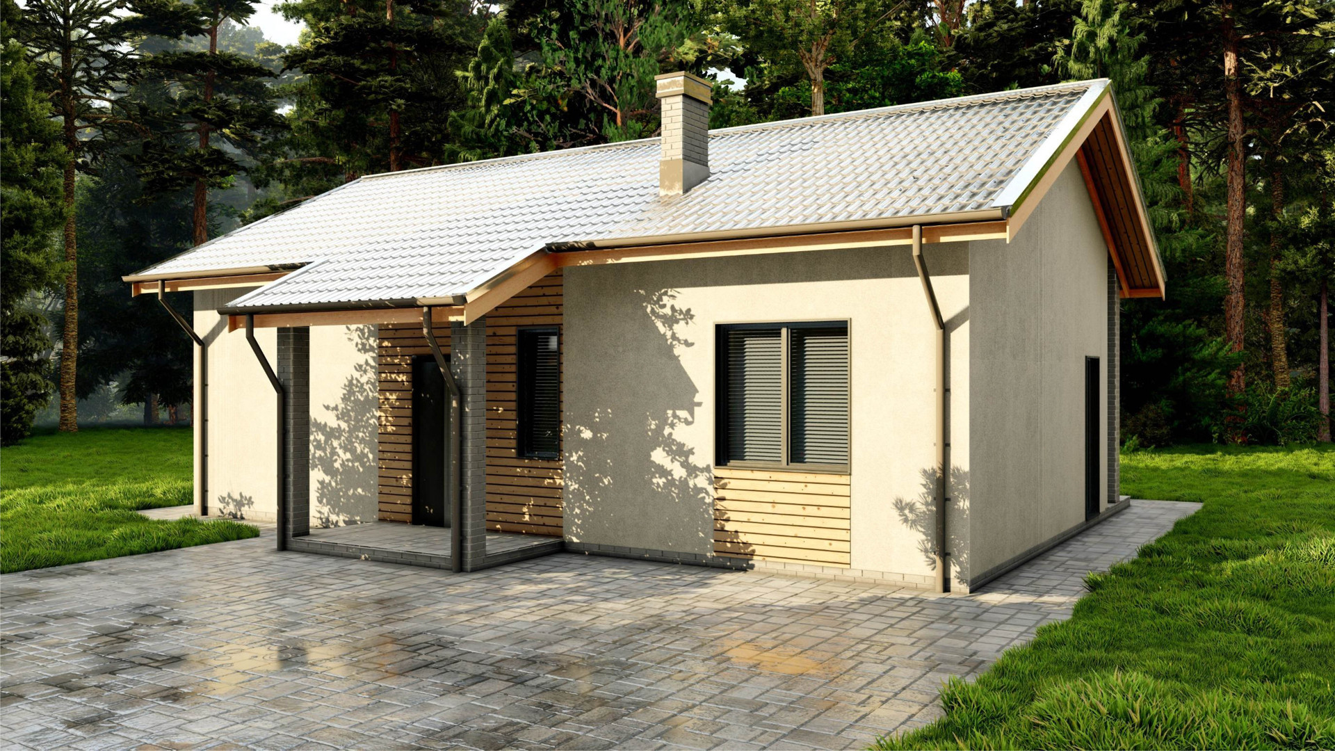 - парковка на две машины, выложенная тротуарной плиткой