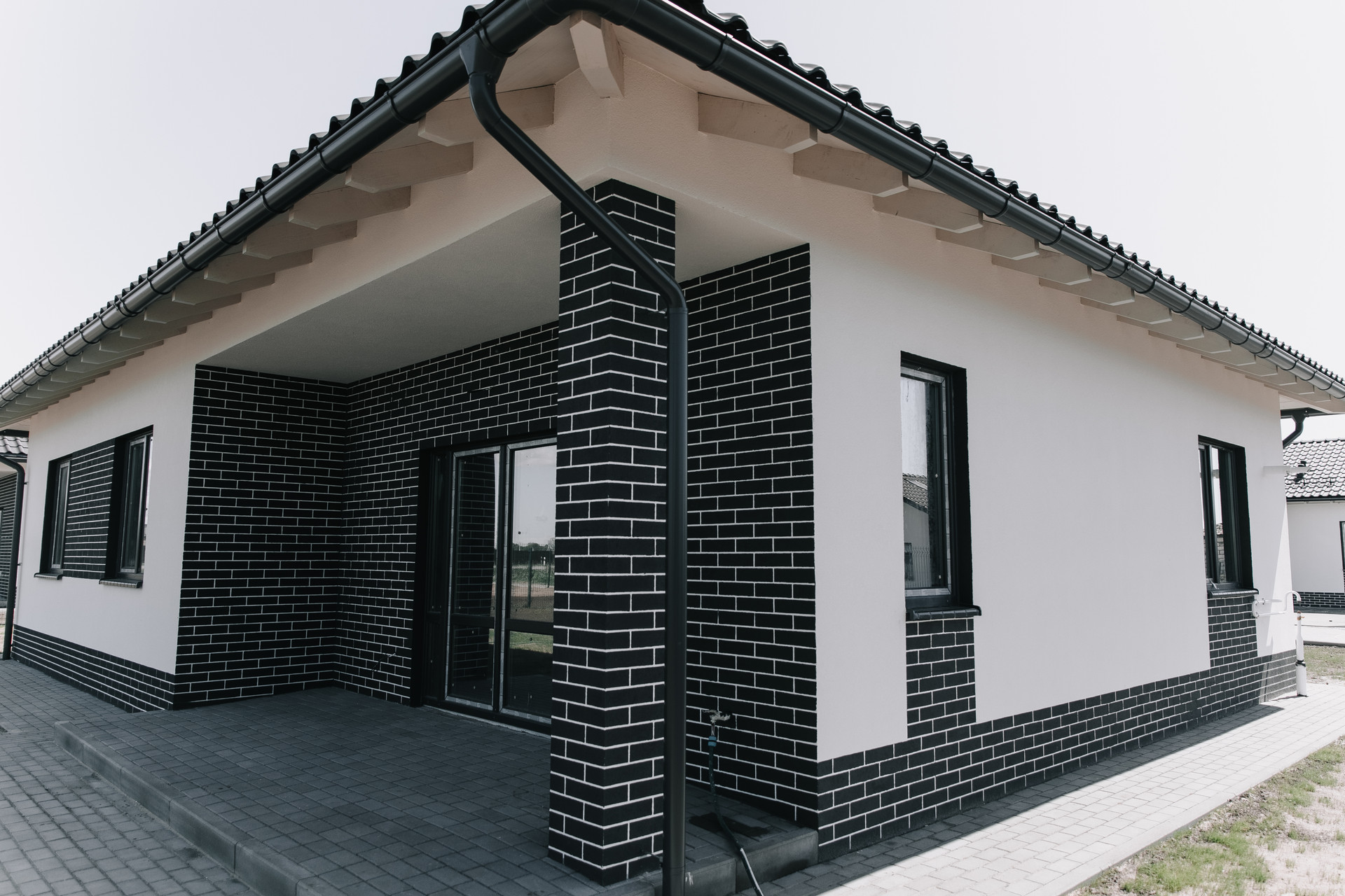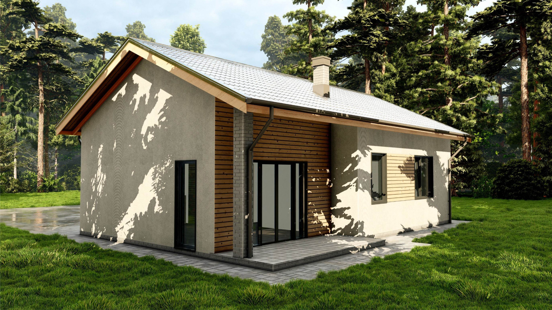 - терраса тротуарная плитка, с выходом из гостиной, на заднем дворе