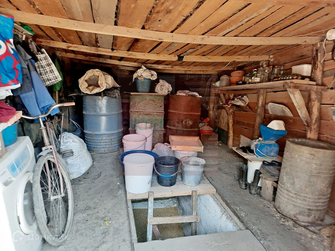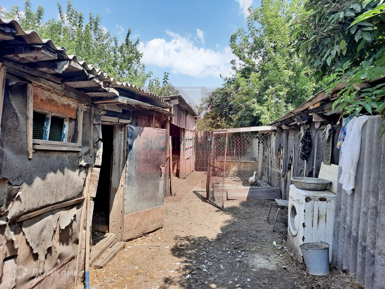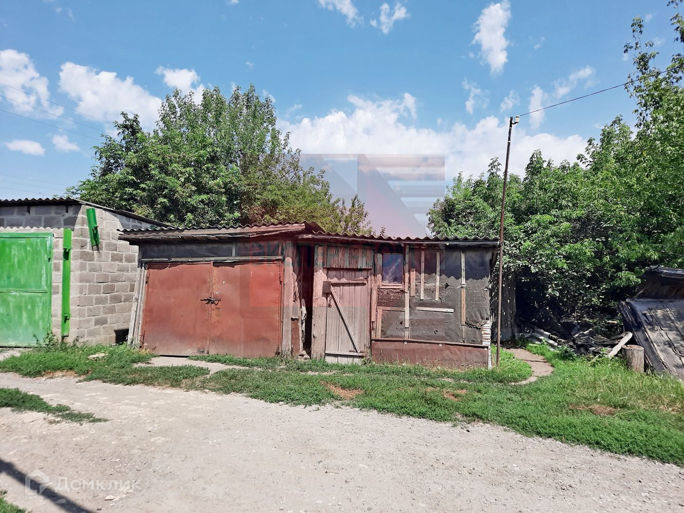 Возле дома земельный участок с гаражом, птичником и хоз. постройками. В гараже яма. Земля по документам оформлена.