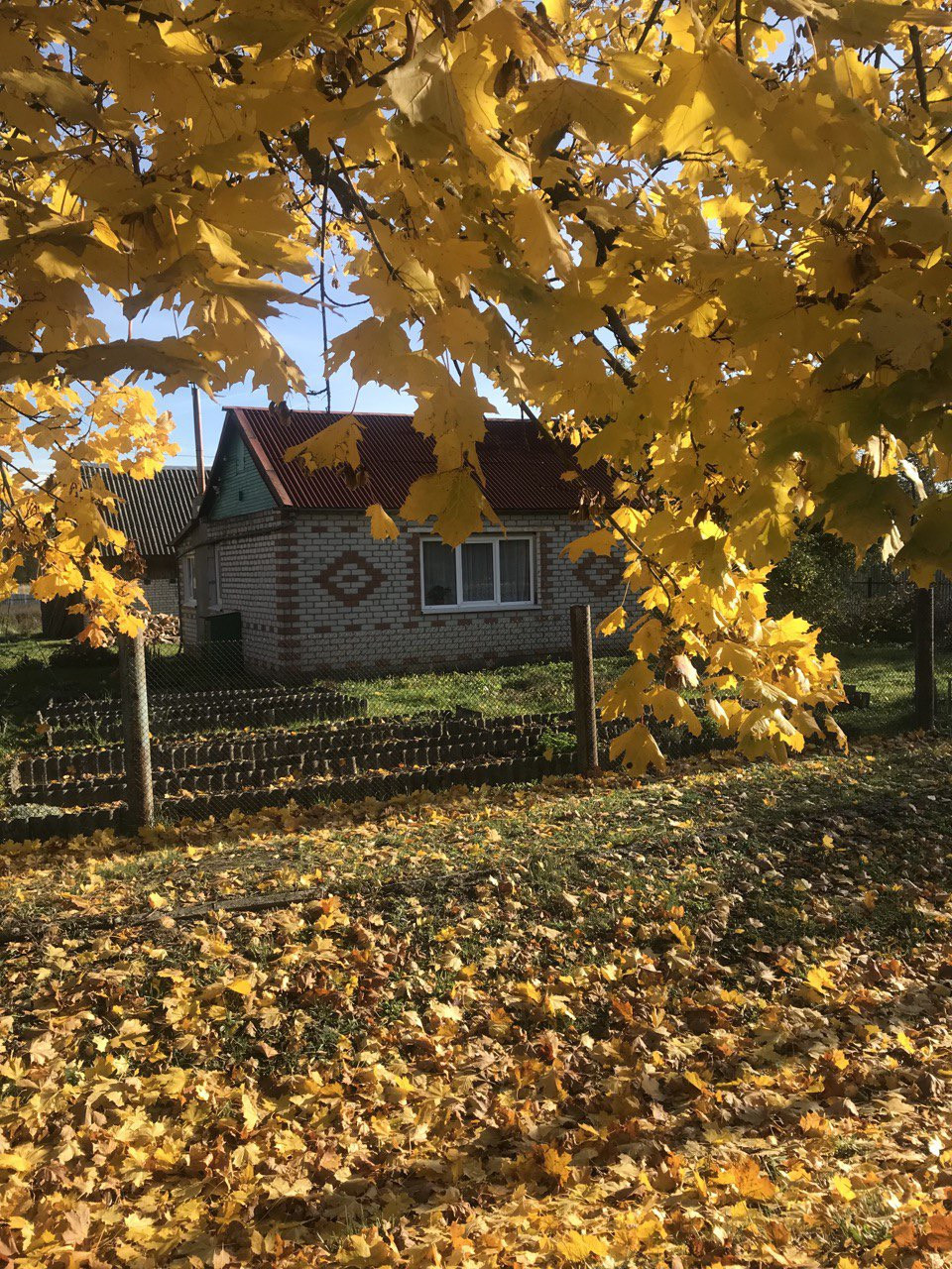 Весь участок огорожен забором из металлопрофиля и сеткой рабицей.