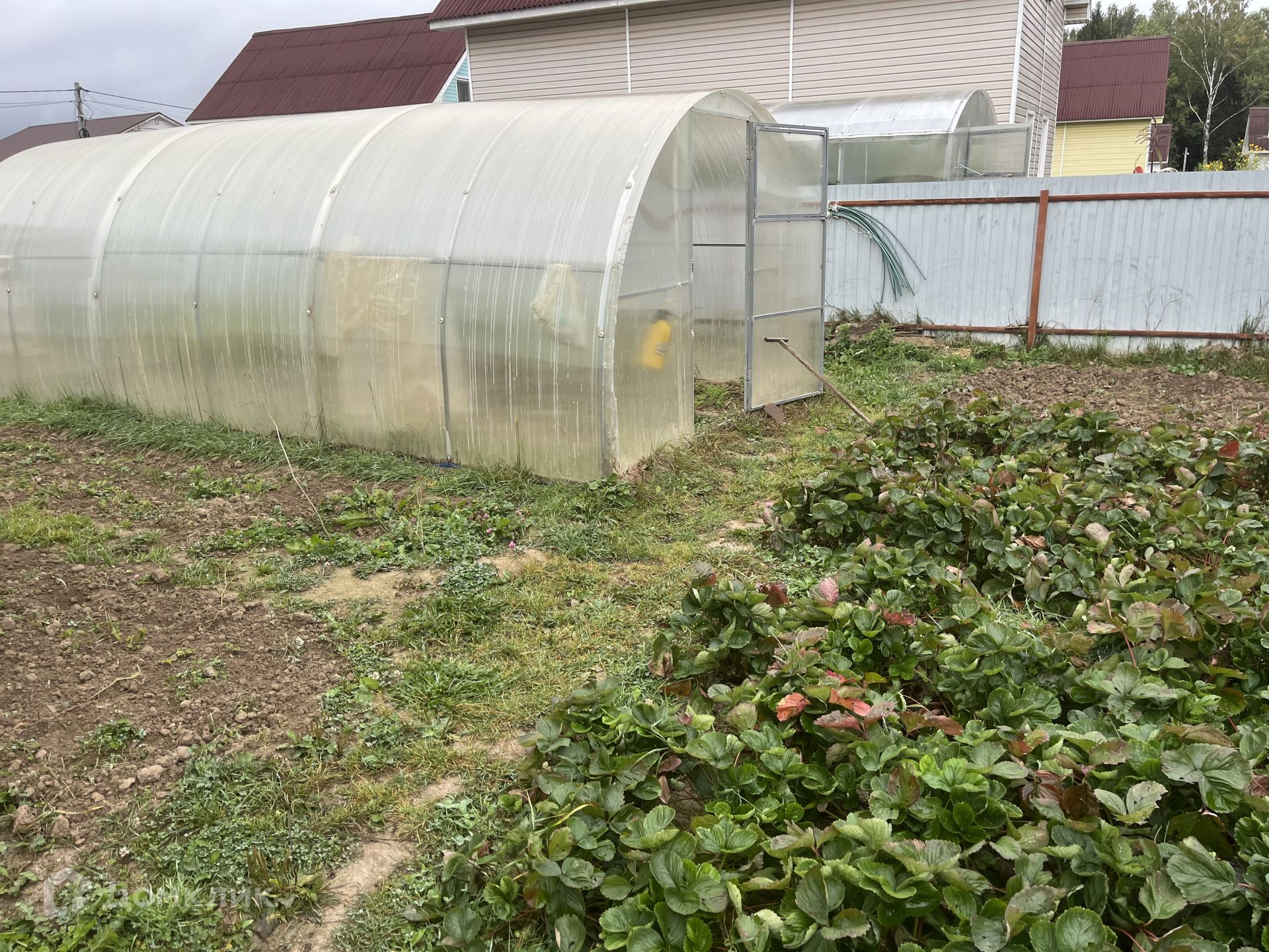 На участке установлена теплица, имеются плодовые деревья и кустарники.