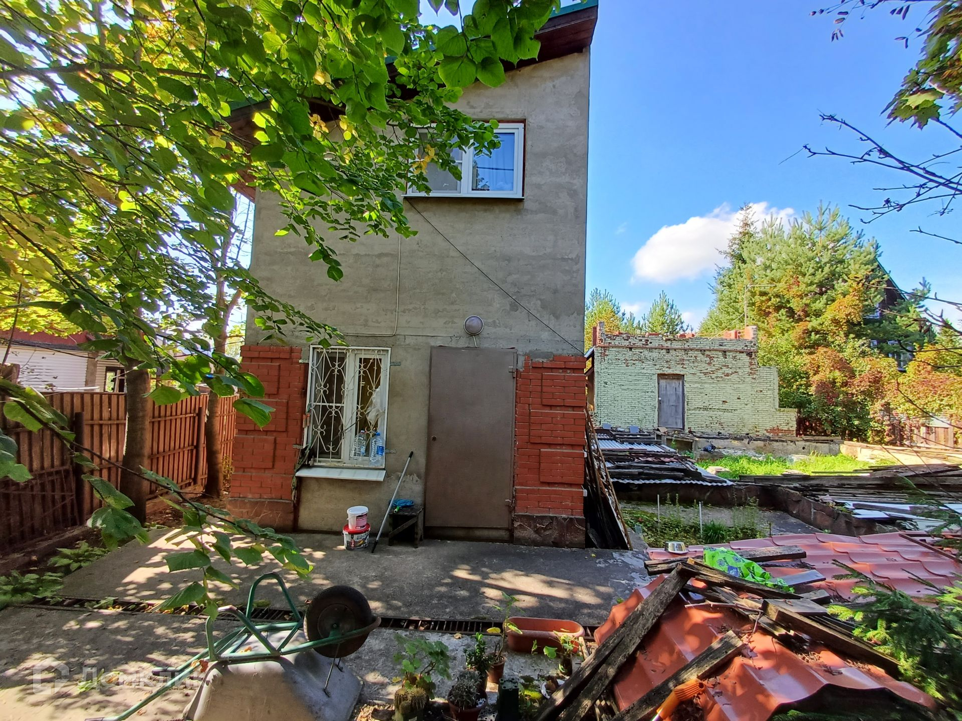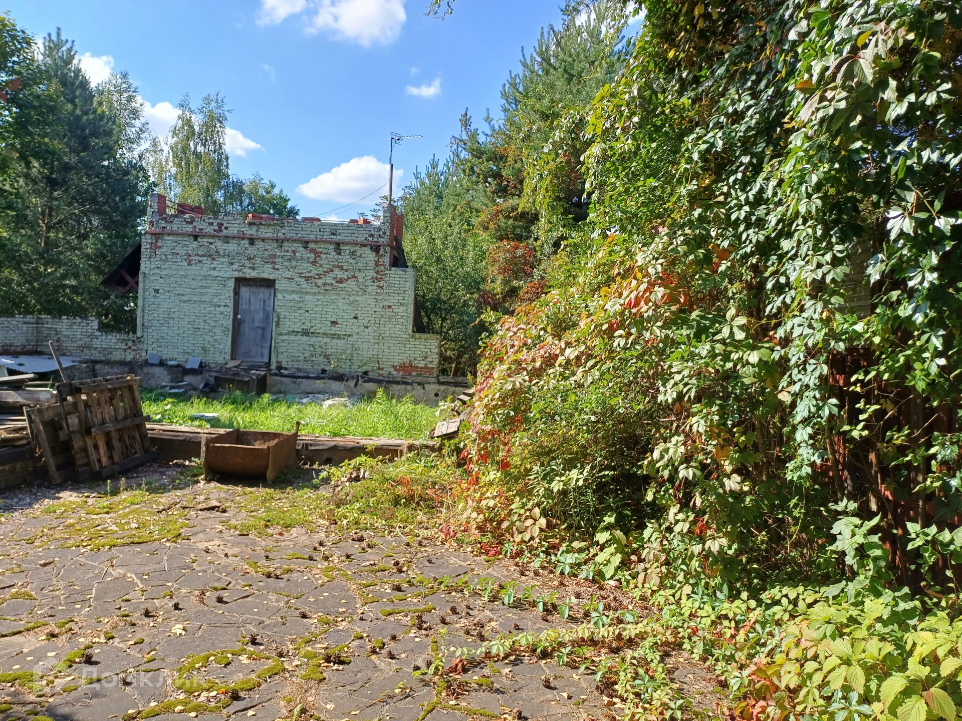 - Двое ворот для въезда, один из въездов рассчитан на 2 автомобиля и выложен брусчаткой. Участок находится в 5 минутах пешим ходом до остановки.
