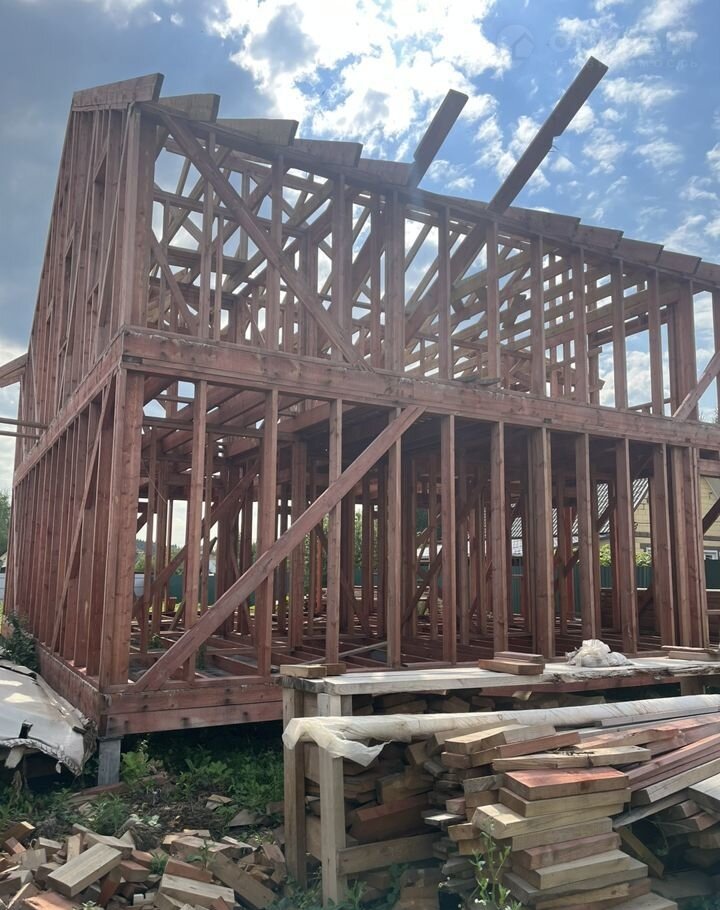 На участке расположен фундамент под основной дом 10х10 кв.м. и уже установлен каркас дома на 170 кВ. м. Отступы все соблюдены. Земли ЛПХ, поэтому разрешение на строительство и ГПЗУ не требуются. План строительства дома есть со всеми замерами, покупателю предоставим.