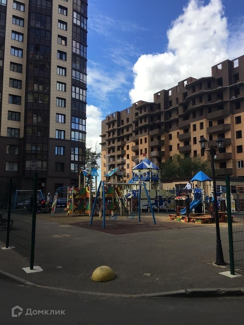 Придомовая территория оснащена большой детской площадкой.