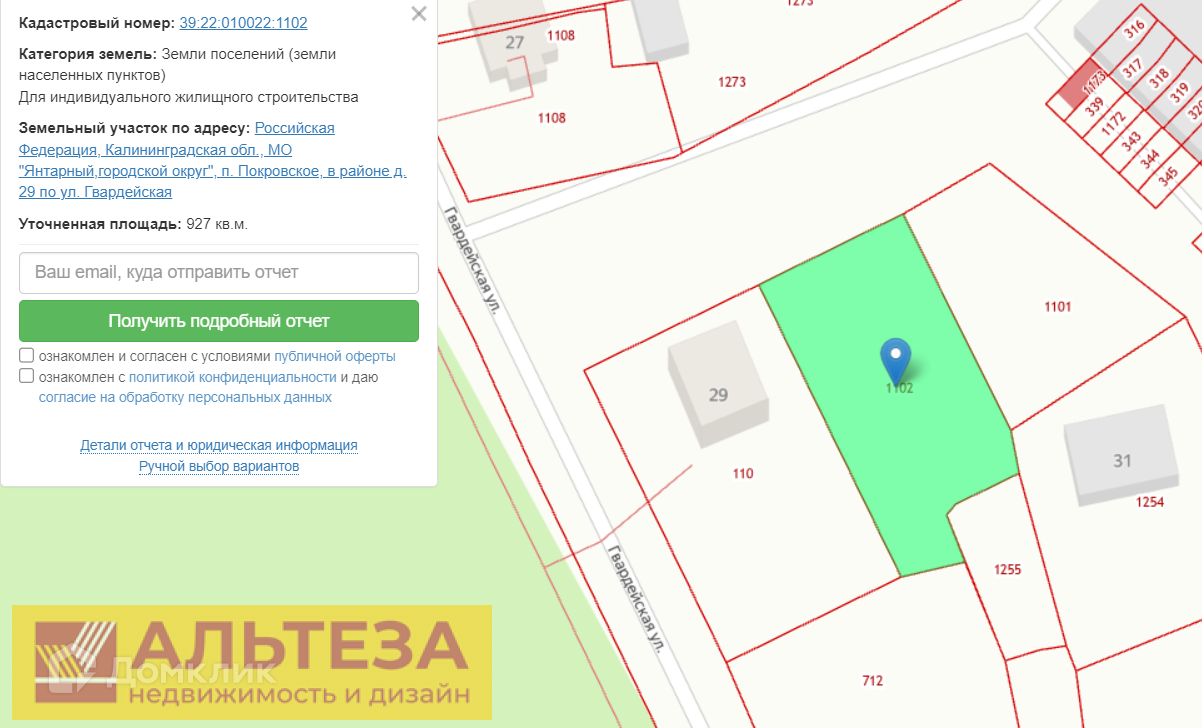 39:22:010022:1102, Покровское п, продается участок, 9 соток, Номер лота: 4214366