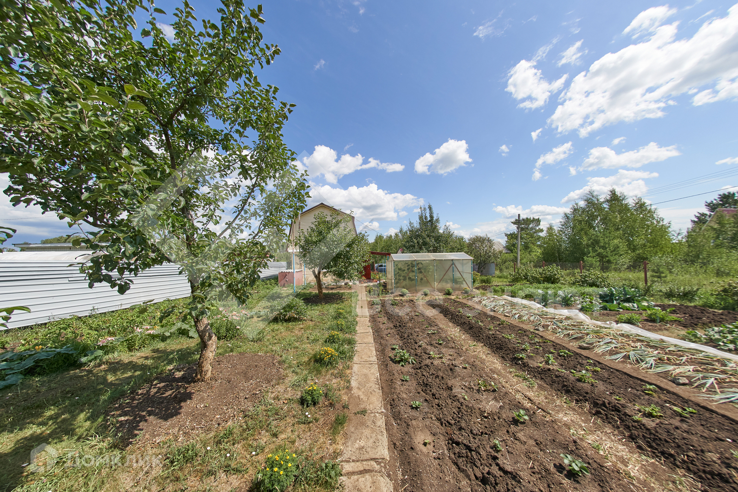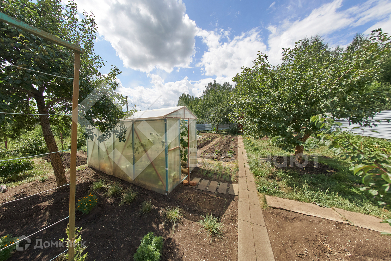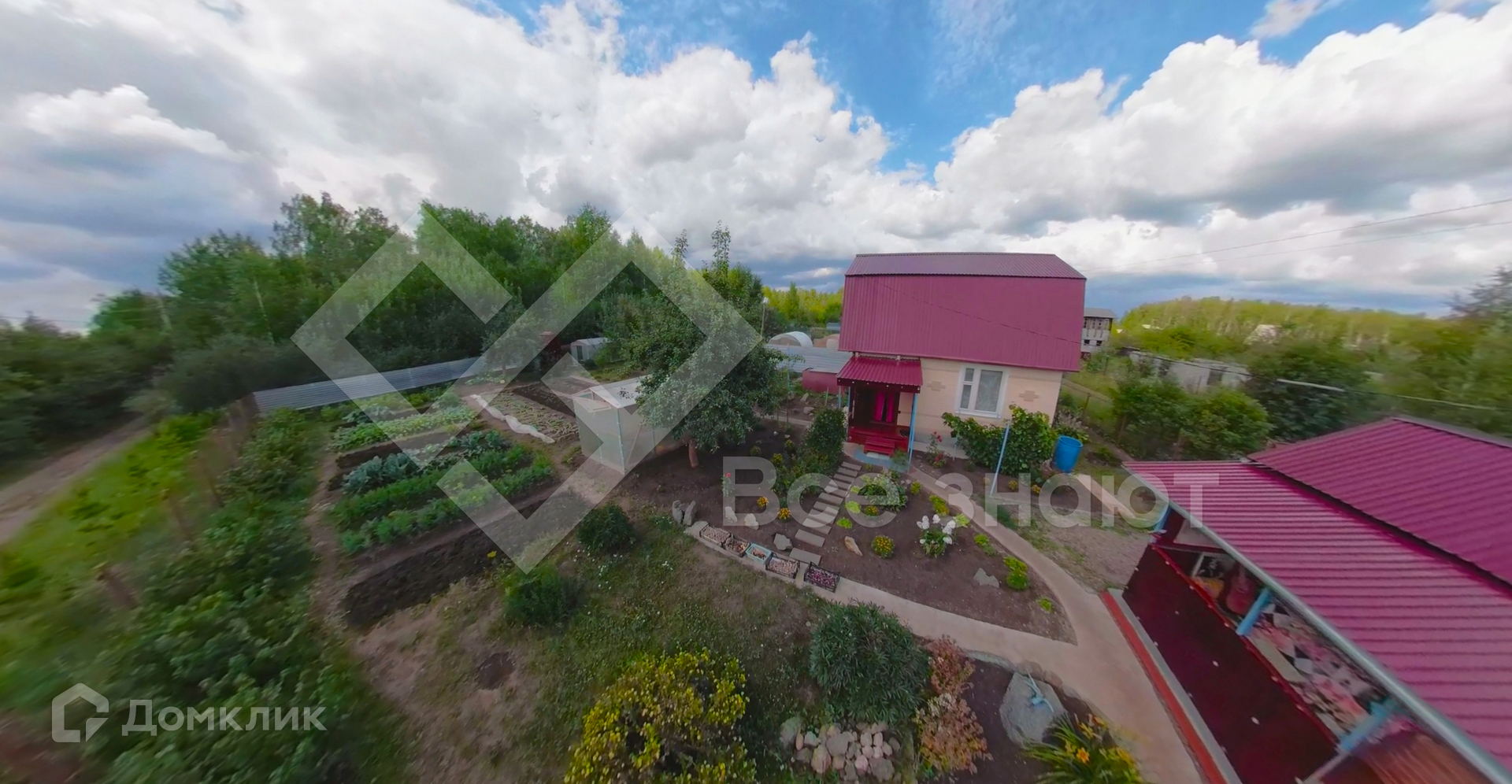 На участке: 2-х этажный капитальный дом, баня, дровница, 2 теплицы, хозблок для хранения инвентаря, бак для воды.