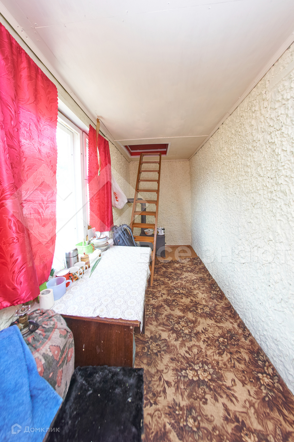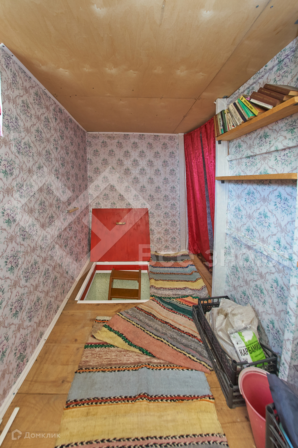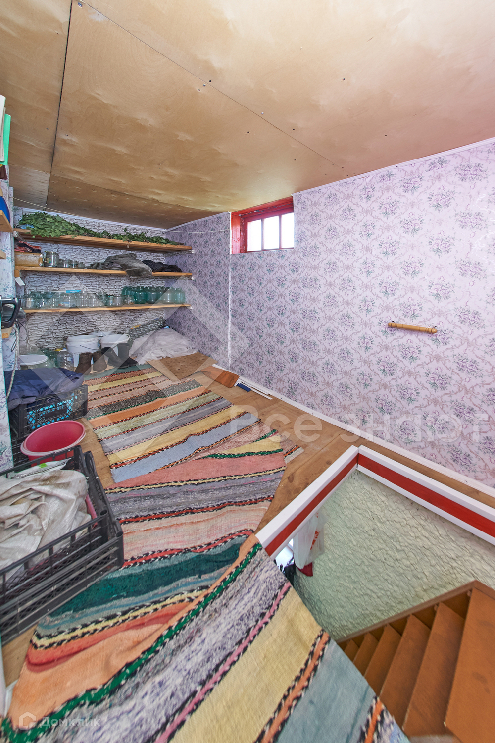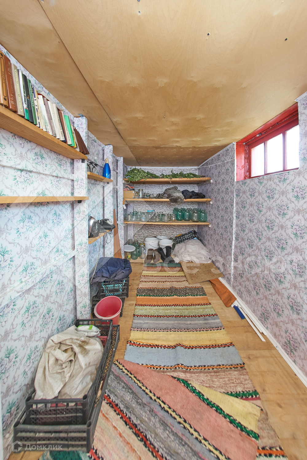 Планировка дома: 1 этаж - кухня + комната, 2 этаж - просторная спальня и помещение свободного назначения с полками для хранение заготовок, банок, урожая.