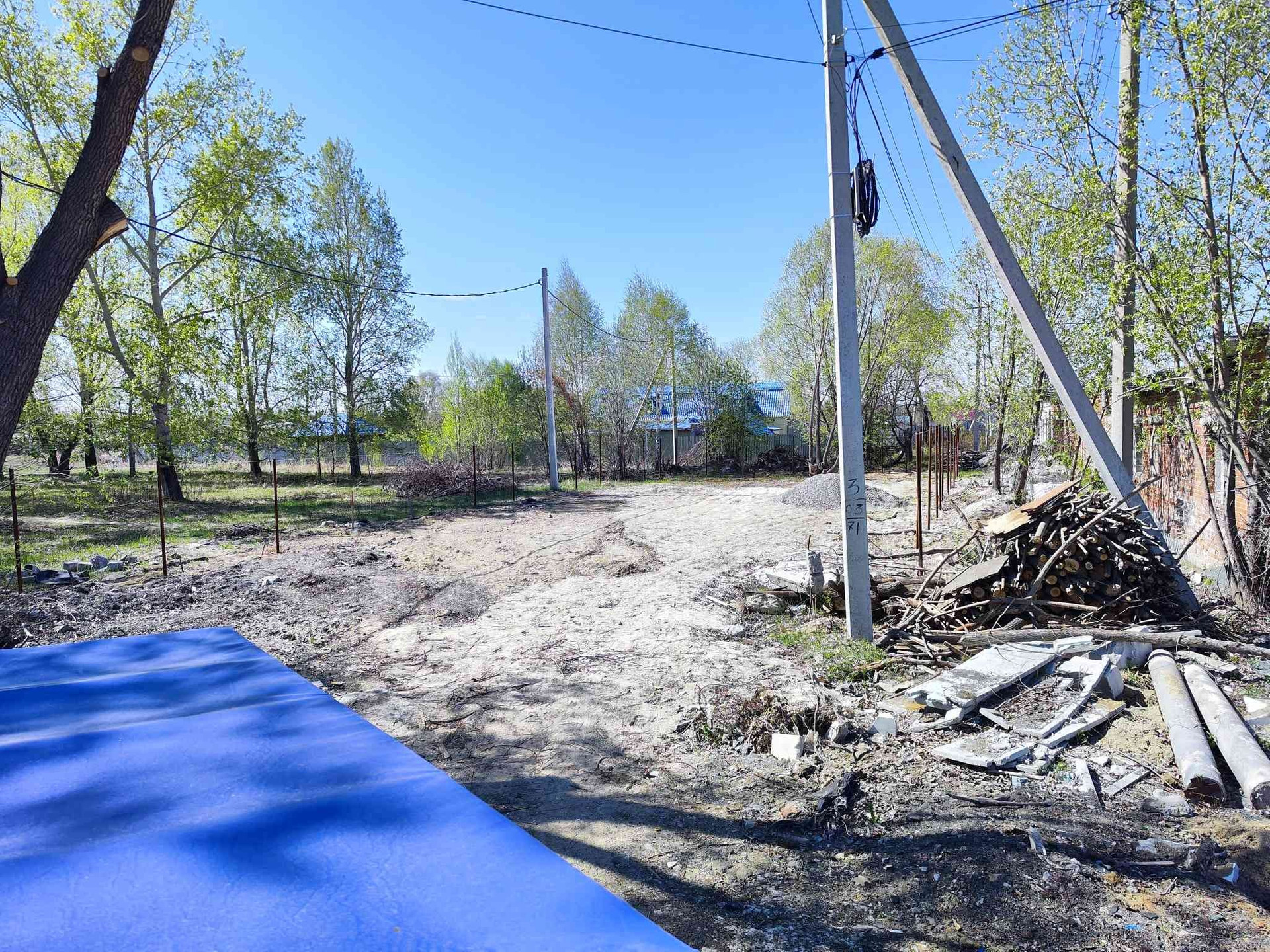По периметру установлены столбы для забора, подключено электричество 380.