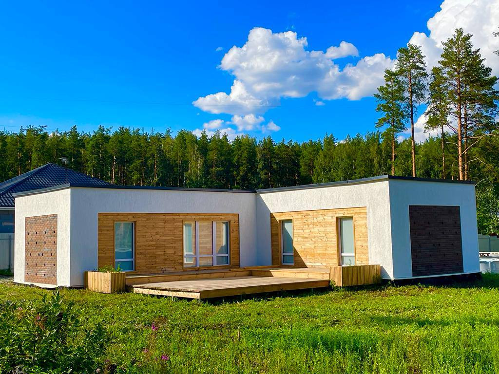 К продаже предлагается светлый, просторный, одноэтажный дом, готовый к проживанию новых собственников. Дом расположен совсем рядом с г. Екатеринбургом (20 минут езды на машине до города). Дом строился «для себя», по этому выполнен из качественных материалов, организация пространства дома продуманна до мелочей. Конструктивно дом состоит из трех комнат правильной квадратной формы, кухни – гостиной , двух сан.узлов с душевой кабиной, котельной, террасы. В доме имеется: электричество, канализация, вода, отопление (радиаторное), предусмотрен «теплый пол» по всему дому, установлены пластиковые окна, межкомнатные двери, частично выполнены отделочные работы сан.узлов. В котельной установлен котел, нагреватель воды. В настоящее время проводится работа по укладке ламината (32 класс). Дом поставлен на кадастровый учет. Описание конструктивных элементов дома: