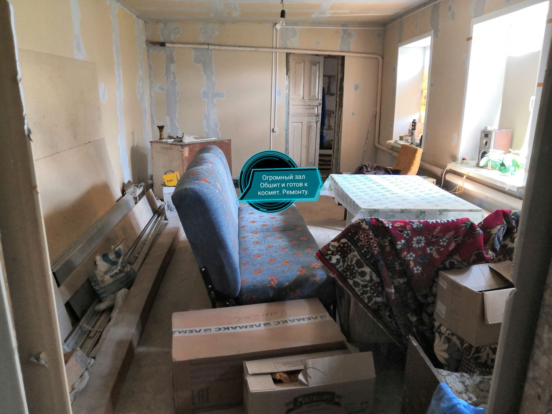 Продается дом не дорого,спальня, огромный зал.Все комнаты полностью обшиты гипсокортоном и потолок, электричество новое, счётчик.Новые окна с утеплителем.Полы полностью перебраты(новые балки,доски,дсп.) Имеется новая пристройка из блоков 10 метров(требует доделок внутри) под кухню с окном, ванну и веранду с окном.Возможность сделать комнату на чердаке,крыша большая.Бонусом для вас в комплекте много досок, котёл в упаковке и тд.Отдельная канализация,огород.На против в двух шагах дет сад и школа.в 10 шагах магазин.Соседи тихие и незаметные.Торг уместен в вашу пользу.