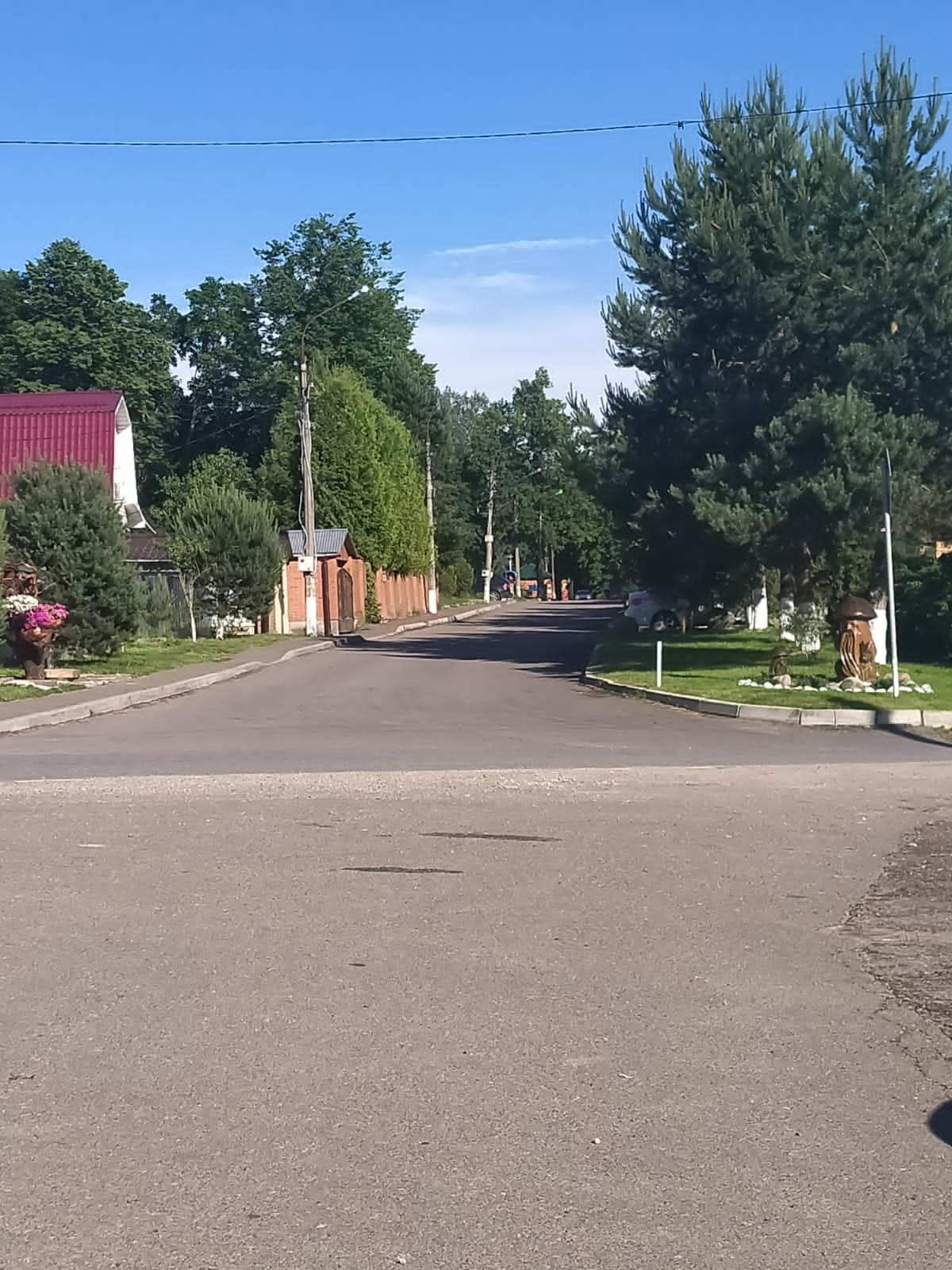 Рядом храм, река, хвойный лес вокруг деревни, парк, магазины.