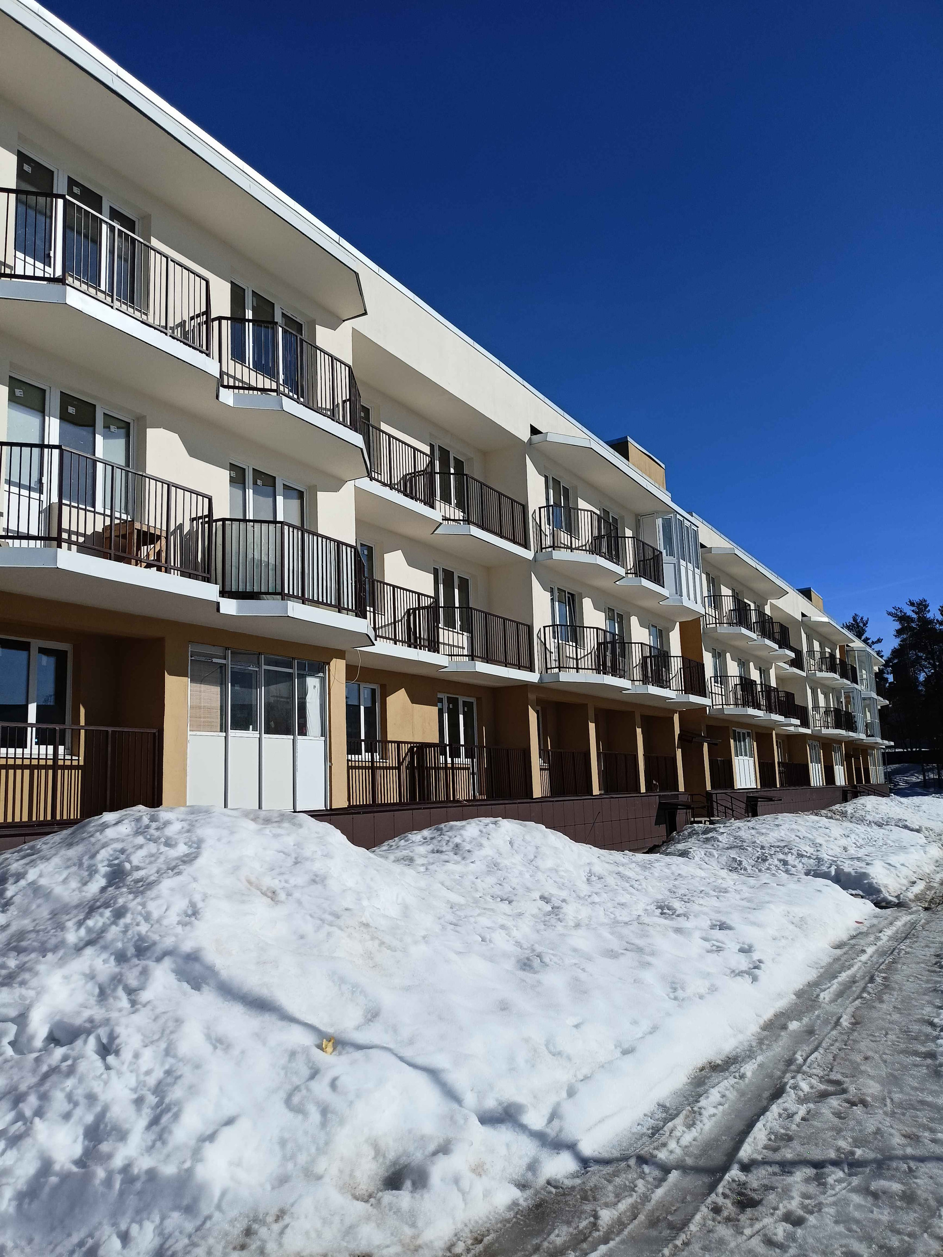 Новый дом, рядом с озером,всего 3 этажа.Студия с балконом на втором этаже. Окна выходят на юго-запад ,солнечная сторона. Без отделки , установлена новая входная дверь (не от застройщика), выполнена электропроводка, розетки выключатели. Счётчики ГВС и ХВС, щиток с электро счётчиком и автоматами внутри квартиры установлены. Площадь 22.8 кв.м плюс балкон  3 кв.м.