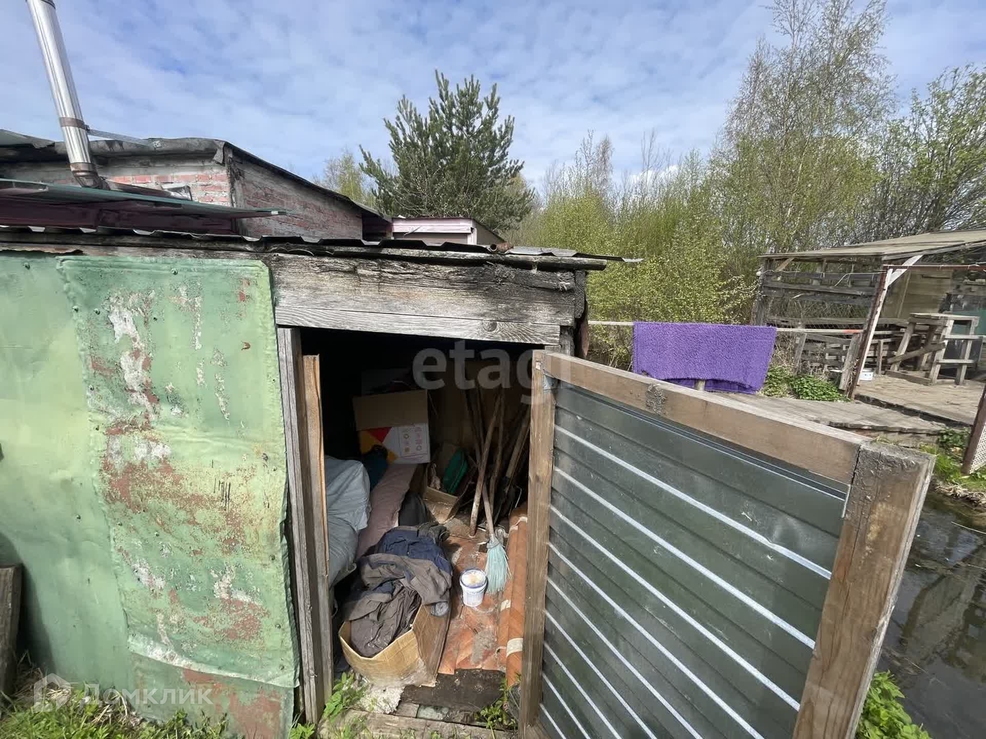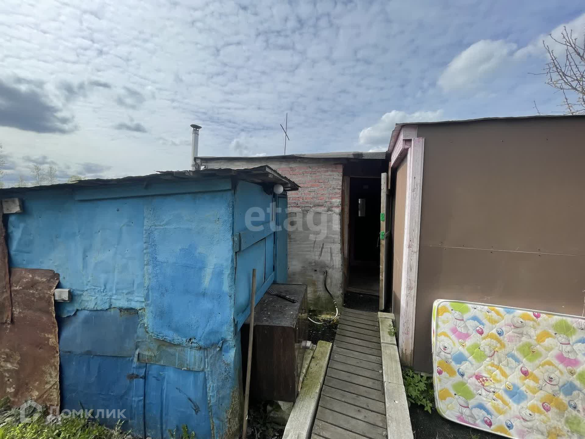 Вторая часть участка это гараж с пристроенным двухэтажным домом из пеноблока. В доме также есть печь для круглогодичного обогрева. Участок на котором стоит гараж в аренде от кооператива Зенит.