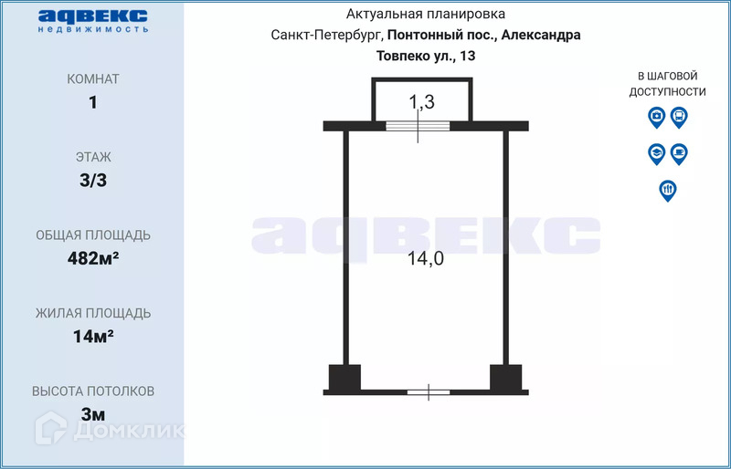 Комната, 482 м2, на продажу в посёлке Понтонном, улица Александра Товпеко, 13