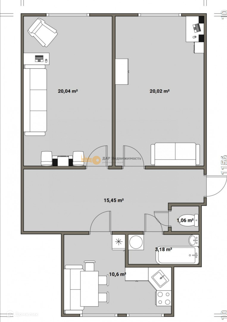 Количество комнат 2