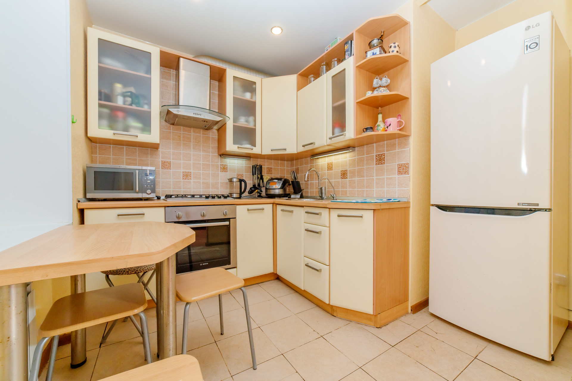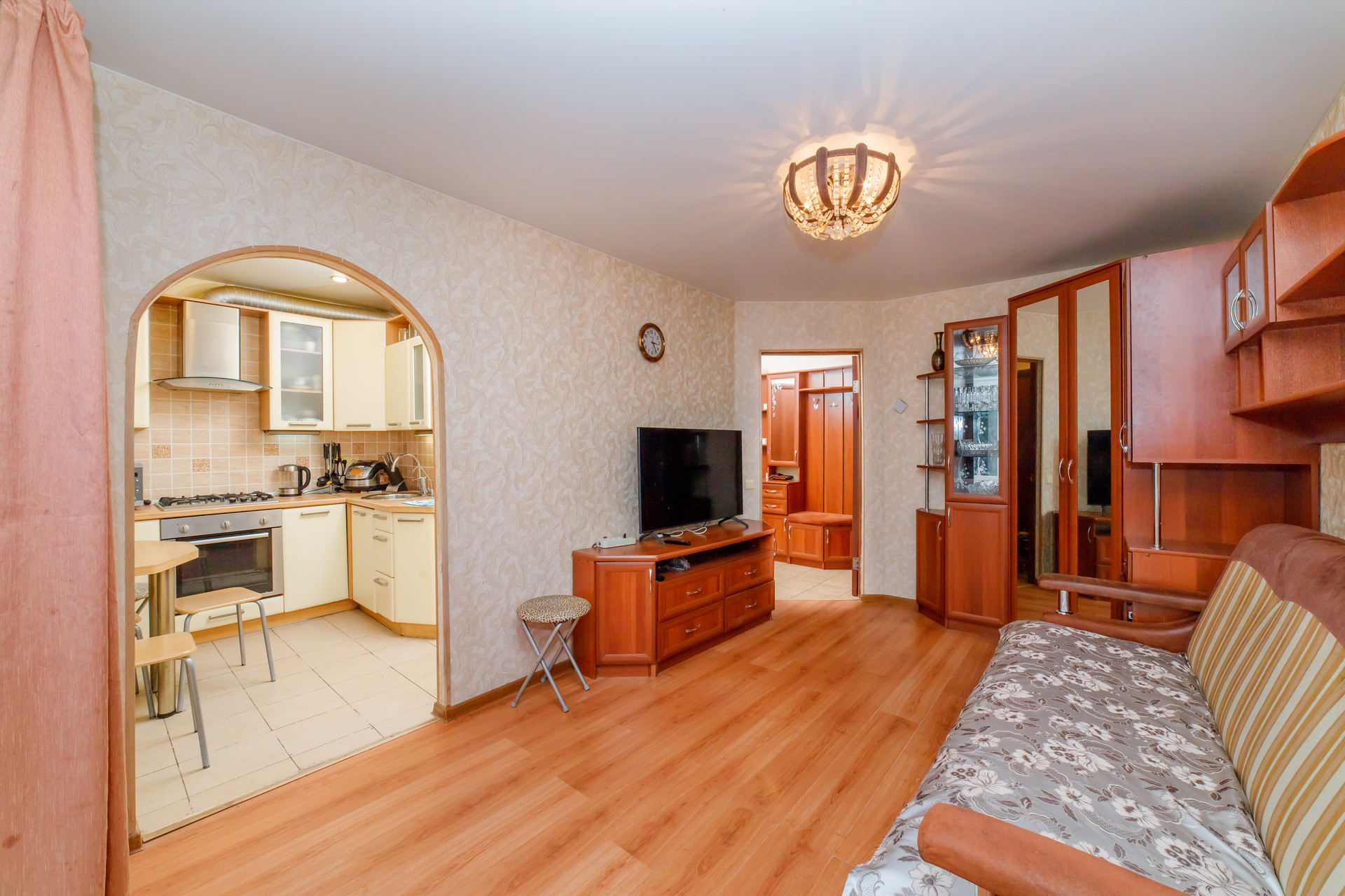 По наполнению: есть кухня, стиральная машинка, мебель.