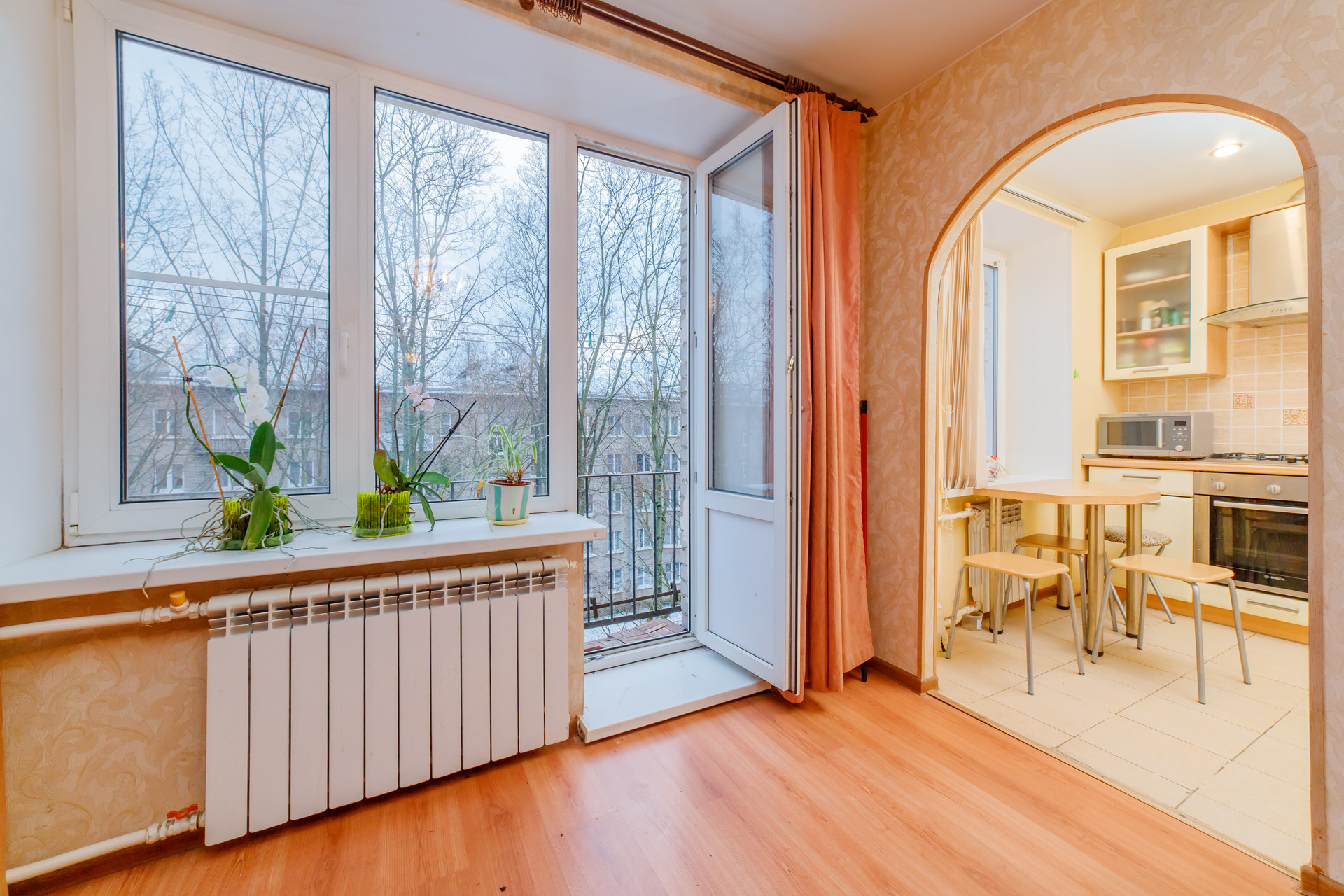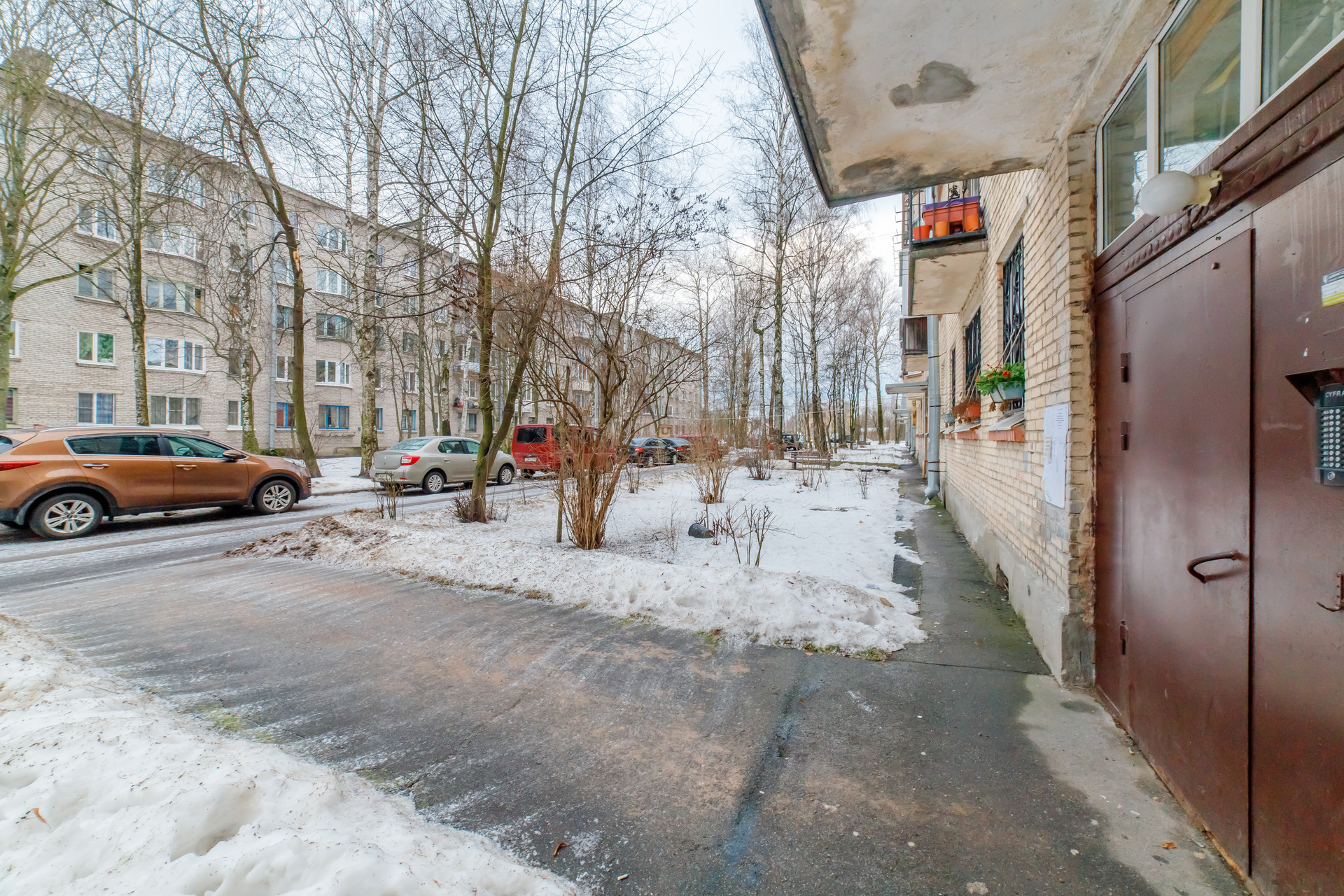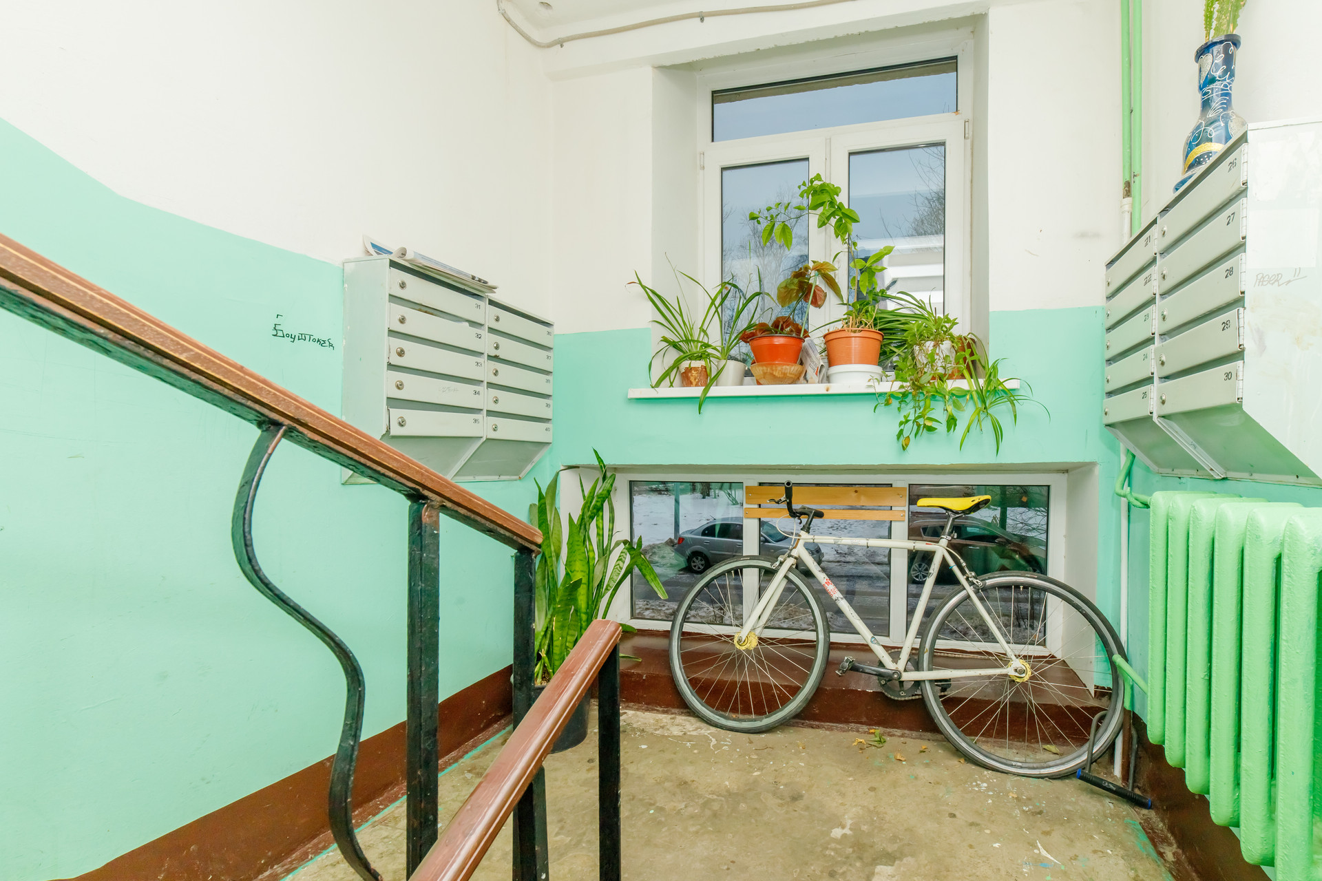 Окна выходят во двор, есть маленький балкон.