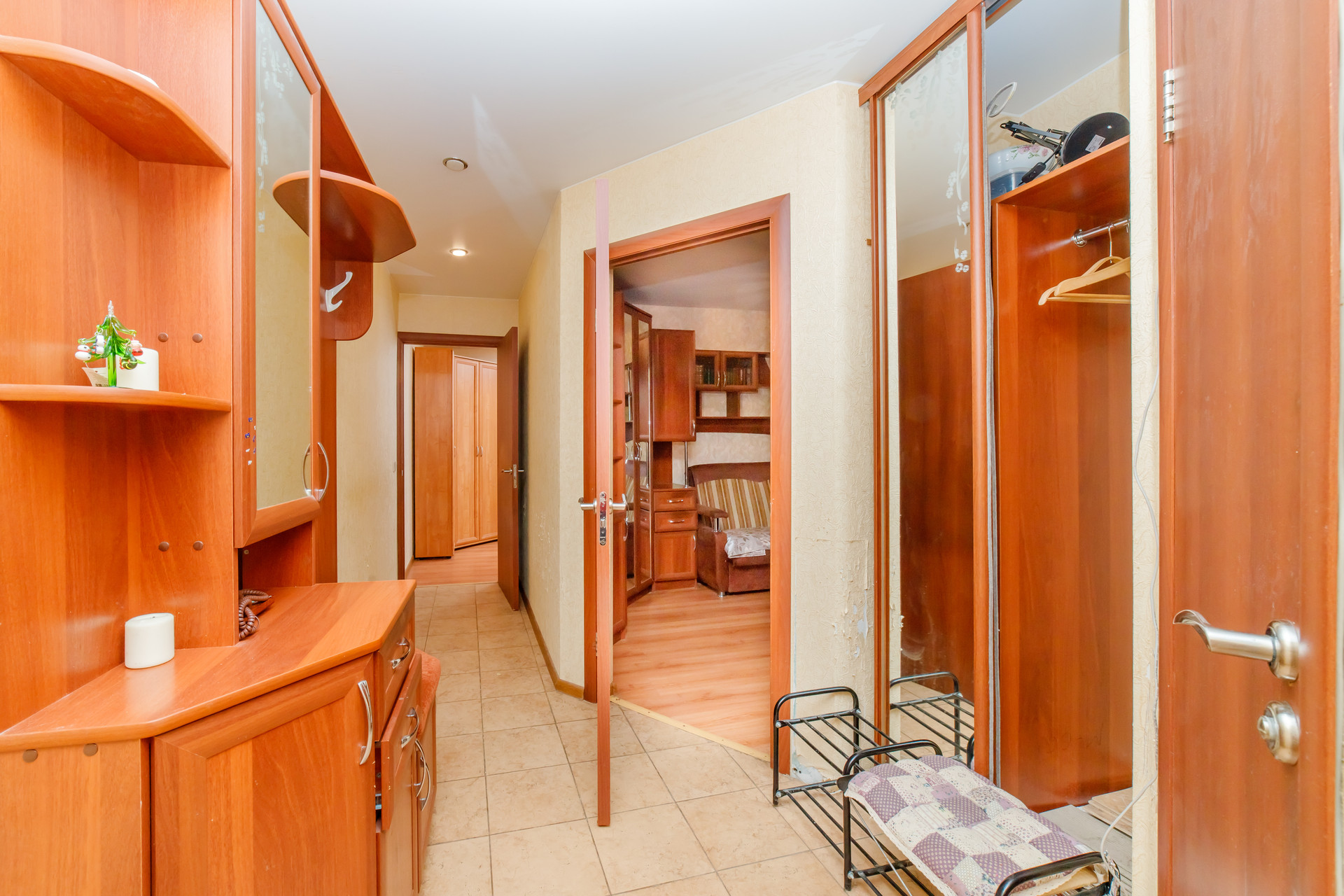 Продается двухкомнатная квартира. В квартире сделан косметический ремонт, мебель остается, можно сразу заехать. Одна из комнат – проходная, ведет на кухню. Вторую комнату можно разделить на 2 зоны: спальную и рабочую. Душевая и туалет объединены. В коридоре есть вместительная гардеробная.