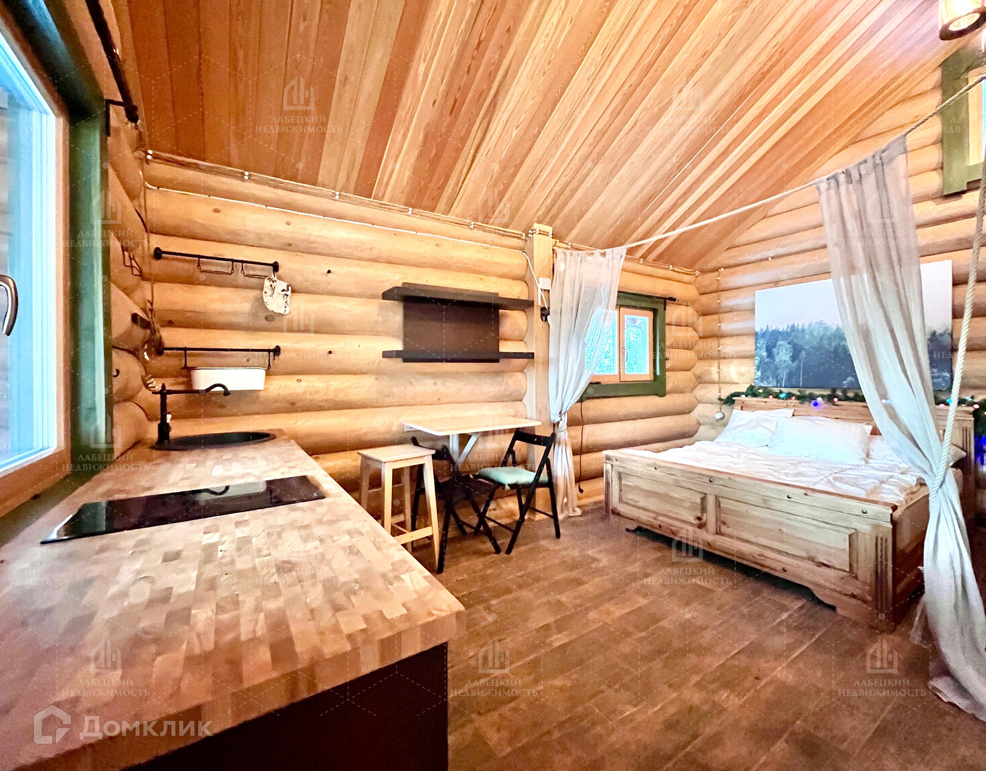 Гостевой дом 21 м² построен из оцилиндрованного бревна, фундамент — монолитная плита, при отделке использовались только НАТУРАЛЬНЫЕ материалы. Дом оборудован всем необходимым для комфортного проживания, где легко смогут располажиться несколько человек.