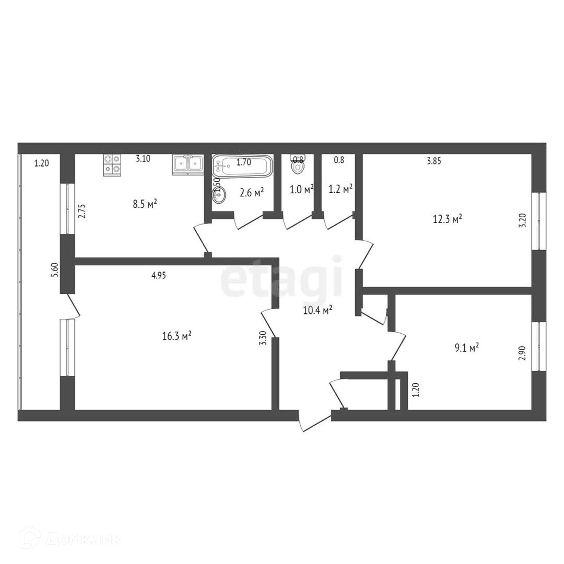 Общая площадь 62.4 м2