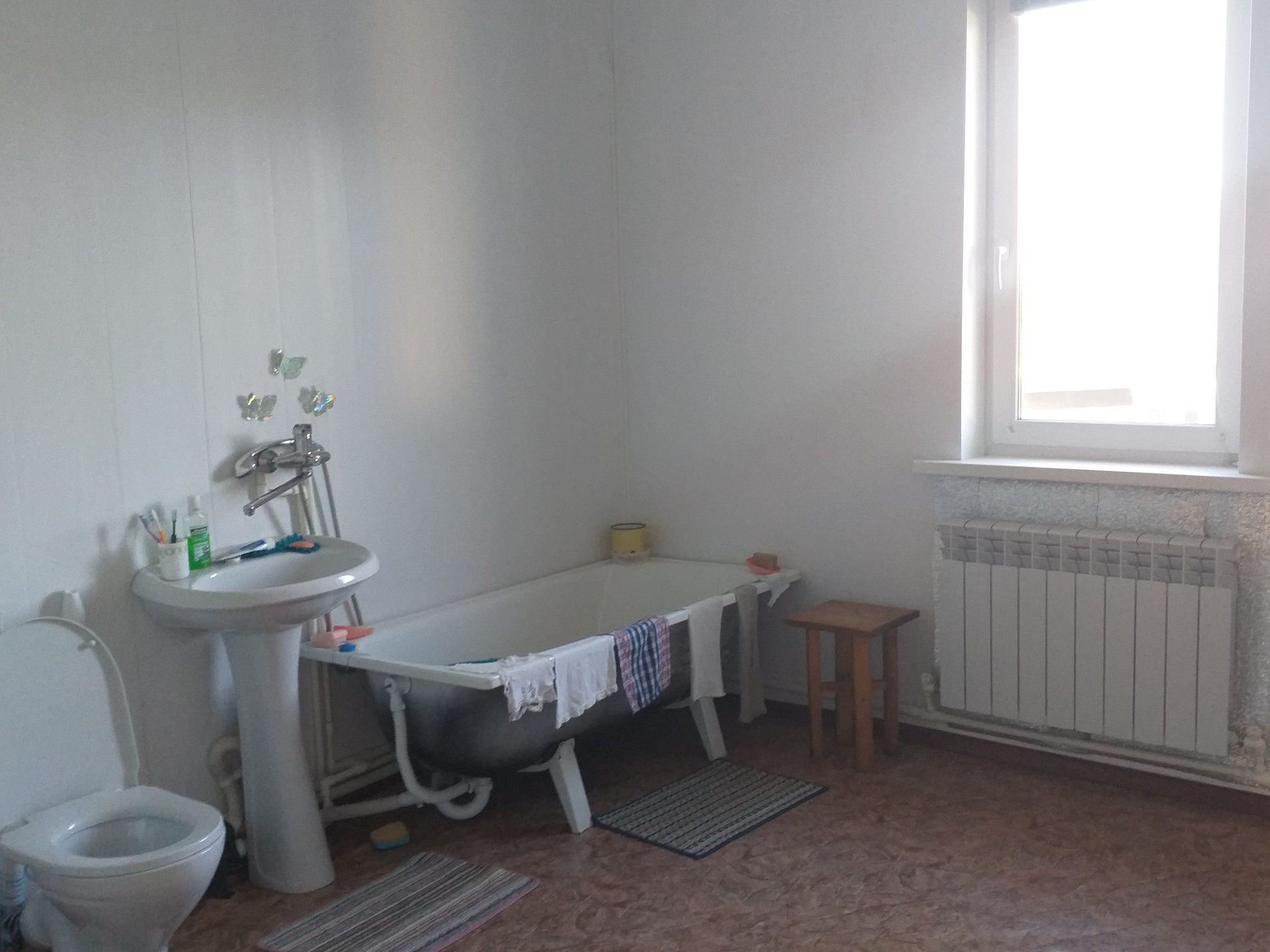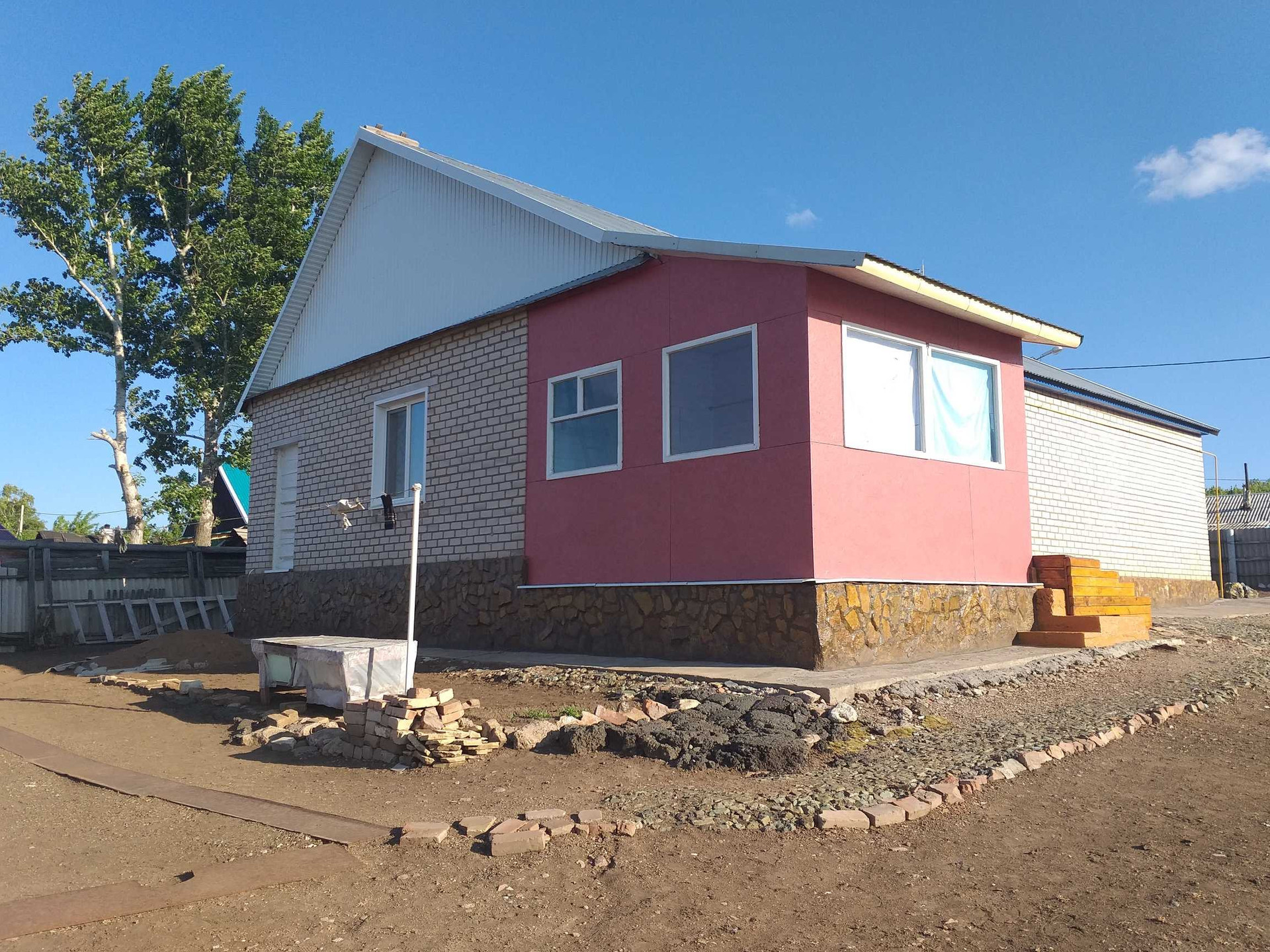 Дом 2003 года постройки. Все удобства, новый газовый двухконтурный котел, центральная вода. Высота потолков 3 м. Хорошие двухкамерные  пластиковые окна. В поселке есть магазины, ФАП, школа. На участке плодородная почва. Дороги зимой чистят. До города ходит регулярно автобус и поезд.