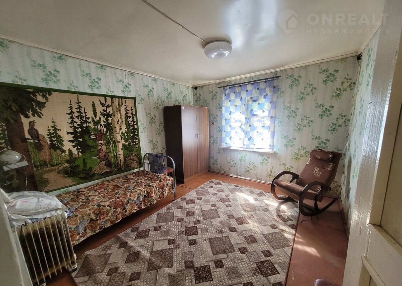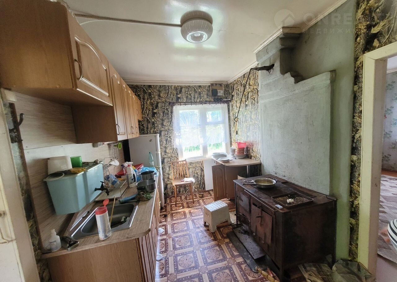 Дом одноэтажный, посторен из бруса. Вход на просторную веранду, внутри три комнаты и кухня. Отапливается двумя печами в хорошем рабочем состоянии, одна печь с плитой. В двух комнатах есть люк в подпол (подвал). Фундамент ленточный. Крыша гибкая черепица.