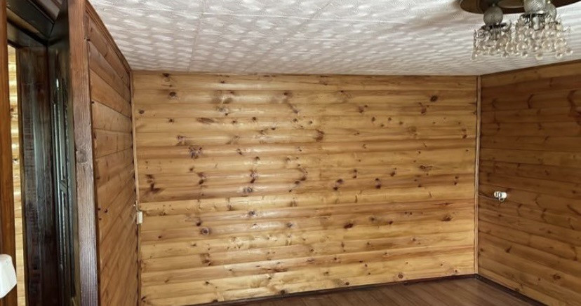 Дом снаружи утеплен и обшит сайдингом, внутри отделан деревом.