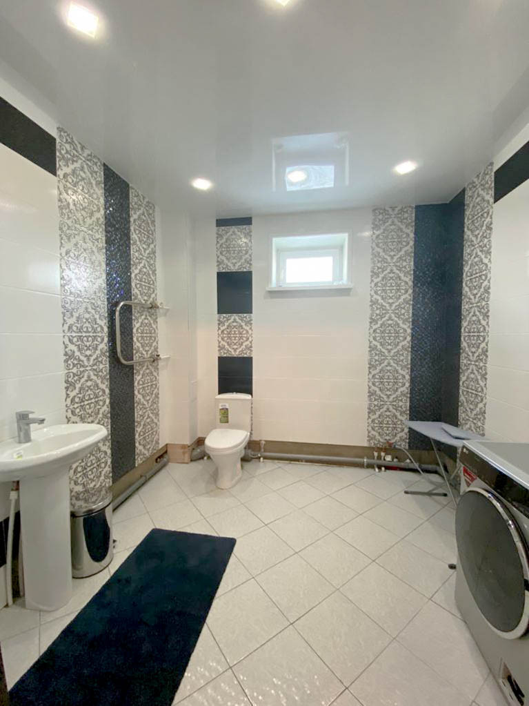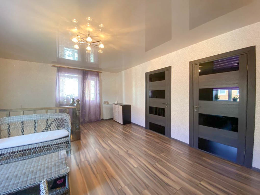 Оба этажа оснащены теплыми полами. По всему периметру дома уложен ламинат и установлены натяжные потолки.