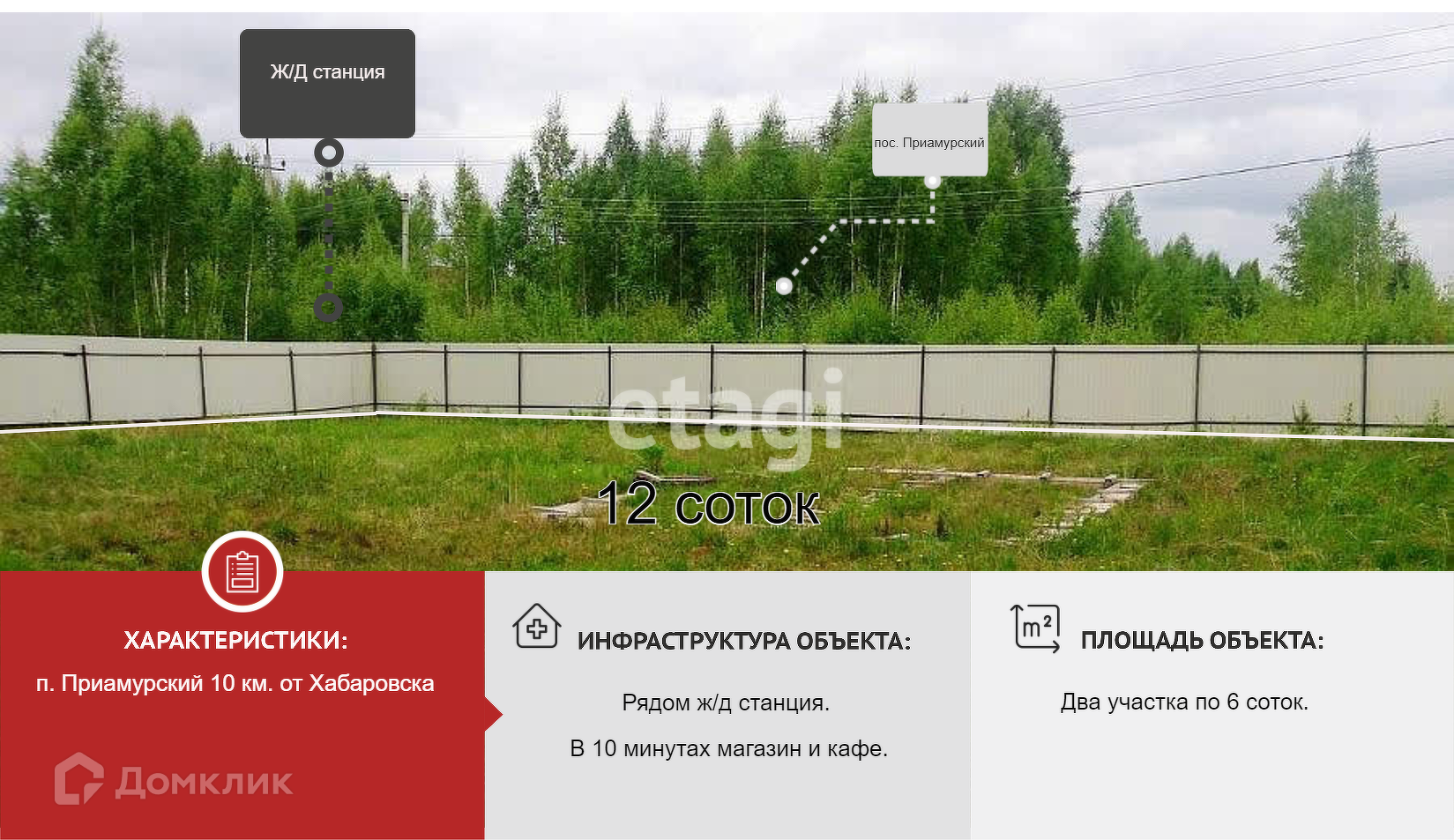 Продам земельный участок в п. Приамурский. Участок под ИЖС (индивидуальное жилищное строительство), отмежеван 6 соток, огорожен профлистом. Есть электричество, скважина. На участке залит фундамент под дом. Фундамент свайный бетонно-ленточный. К участку есть подъездная гравийная дорога. Рядом ж/д вокзал, ходят электрички. До Хабаровска через мост р.Амур 10 км. Рядом с участком есть свободная земля, что позволяет увеличить площадь. Все в собственности. Звоните, отвечу на все вопросы.