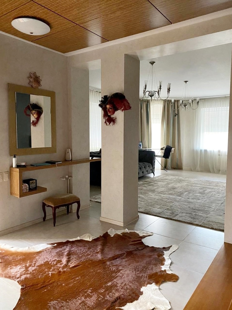 Цокольный этаж: инженерные коммуникации для отопления, очистки воды и ее бесперебойного снабжения, 2 мощных котла, зона прачечной и хранения средств для уборки дома.