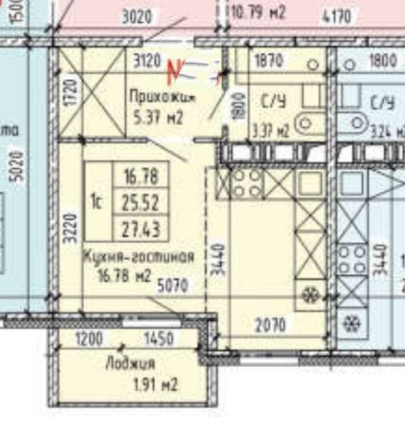 Общая площадь 27.4 м2