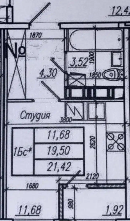 Общая площадь 21.5 м2