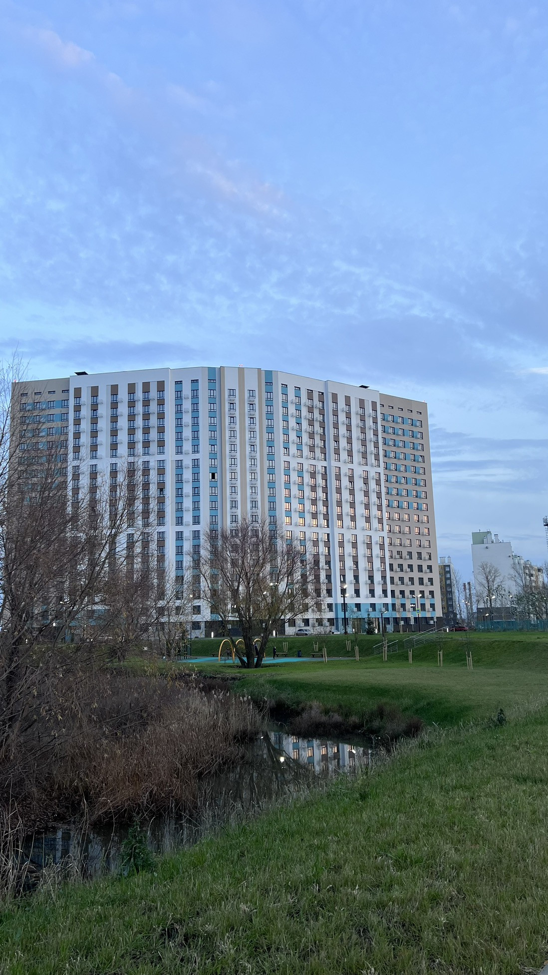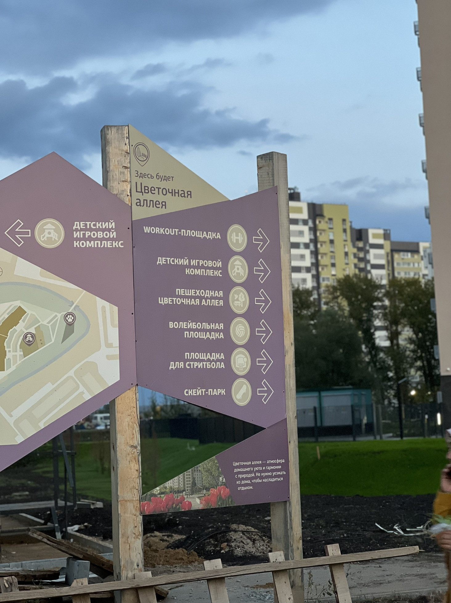Самая главная фишка - закрытый собственный двор, очень красивый и продуманный, со всякими приколюхами: подвесные качели, беседки, детские площадки, уличная библиотека, вайфай во дворе, гирлянда для уюта, газон, много растений разных видов. Собственная площадка для собак. Собственная парковка у дома со шлагбаумом. Своя спортивная площадка: теннис большой и настольный, волейбол, скейт-площадка бесшумная.