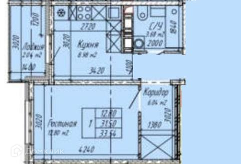 Общая площадь 34 м2