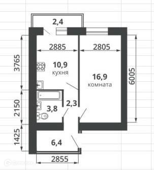 Жилая площадь 17 м2
